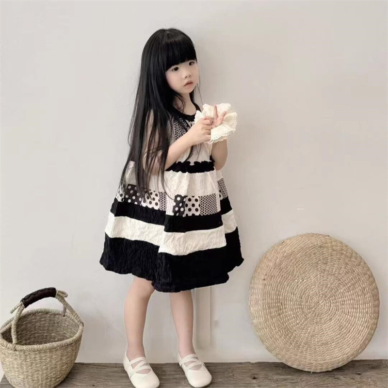 슈퍼 좋은 버전! 아기 소녀의 여름 자수 꽃 스티커 민소매 원피스 소녀의 중간 길이 둥근 목 치마스토어 가기