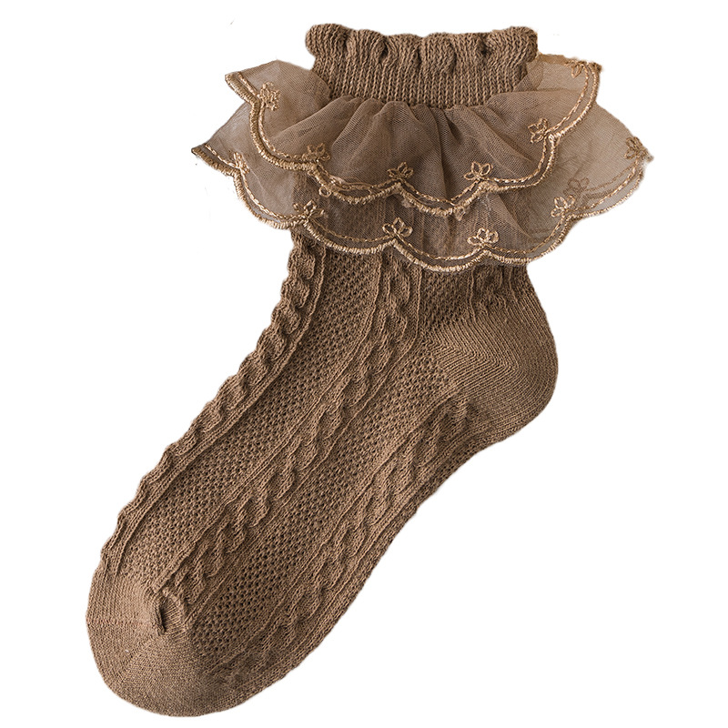 • 릴리 레이스 양말-브라운 [통기성 메쉬]