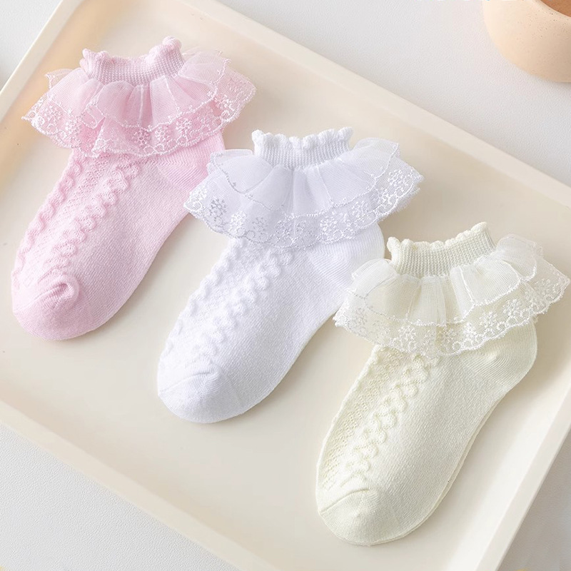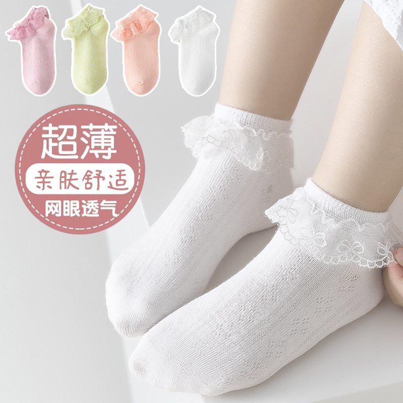 [신규] 여자 양말 새로운 아기 큰 어린이 여름 얇은 달콤한 메쉬 공주 레이스 양말