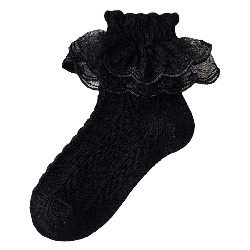 • 로리타 레이스 양말-블랙 [통기성 메쉬]