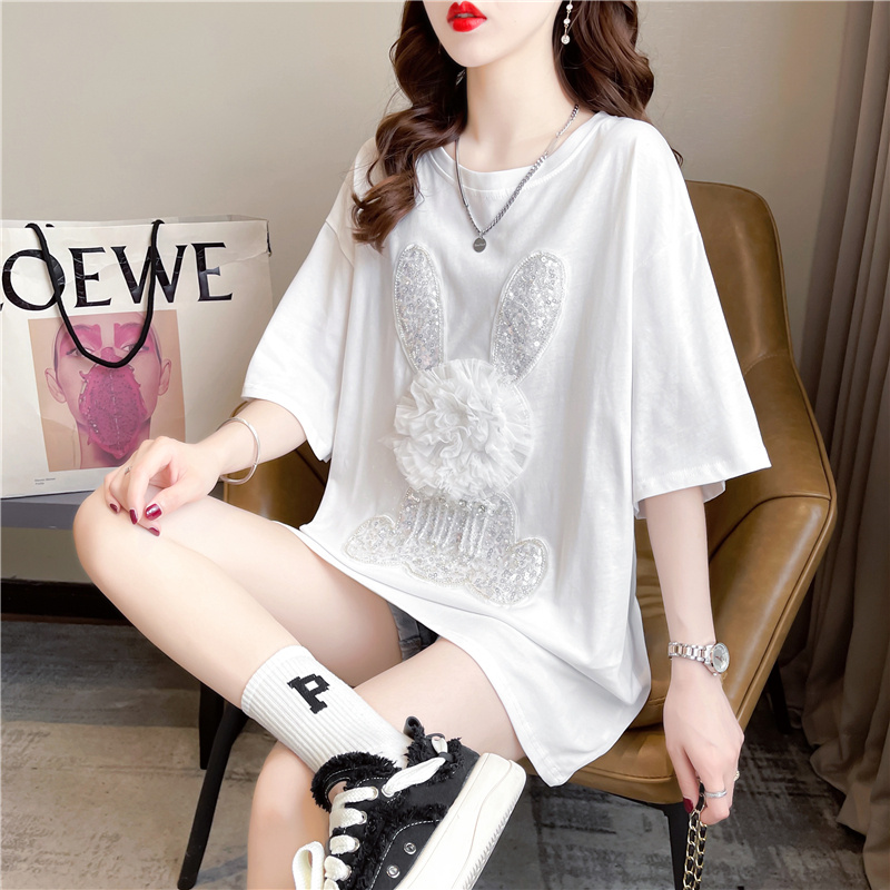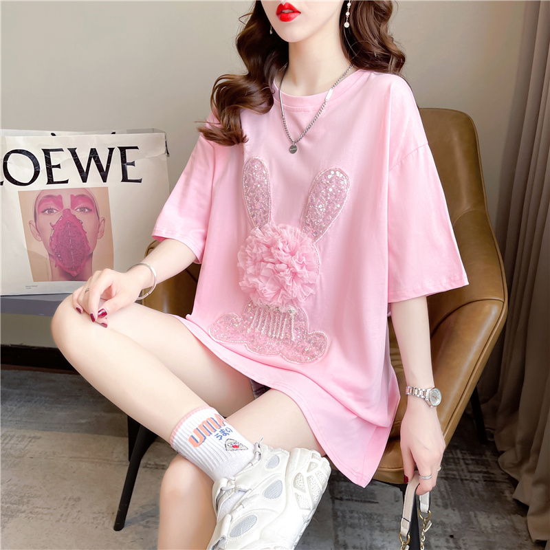 유럽 중공업 플러스 사이즈 폭발 여성 작은 셔츠 2025 새로운 여름 코트 통통녀 100.00kg 면 반소매 티셔츠 여성스토어 가기