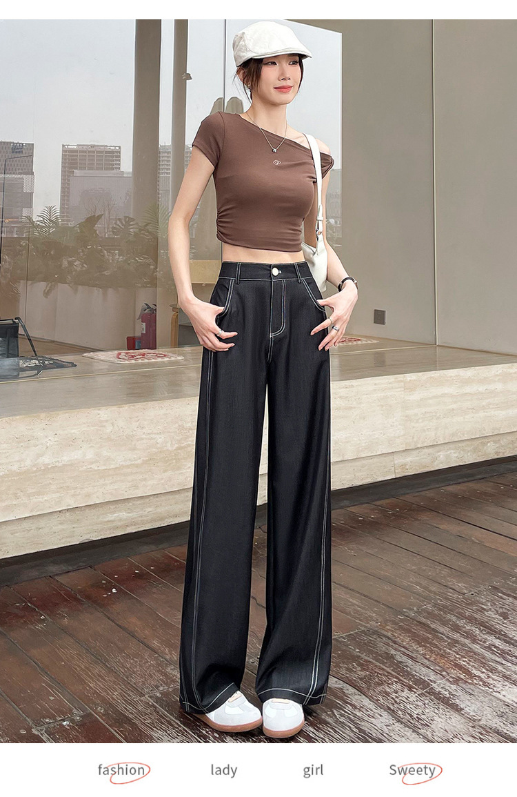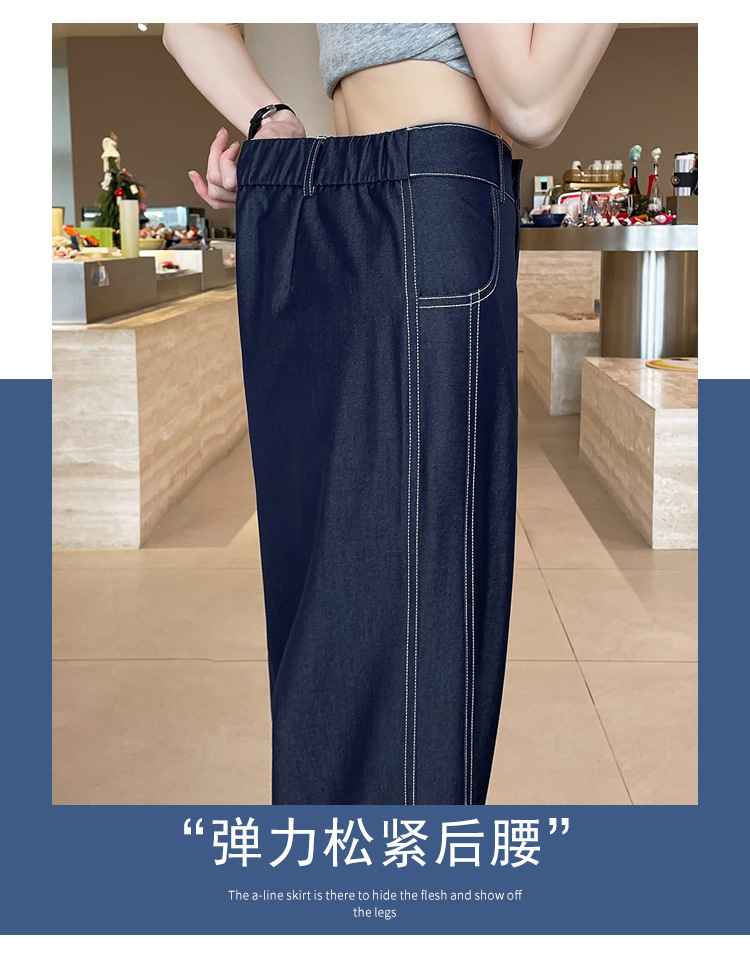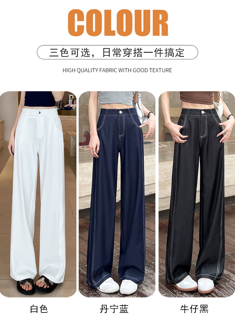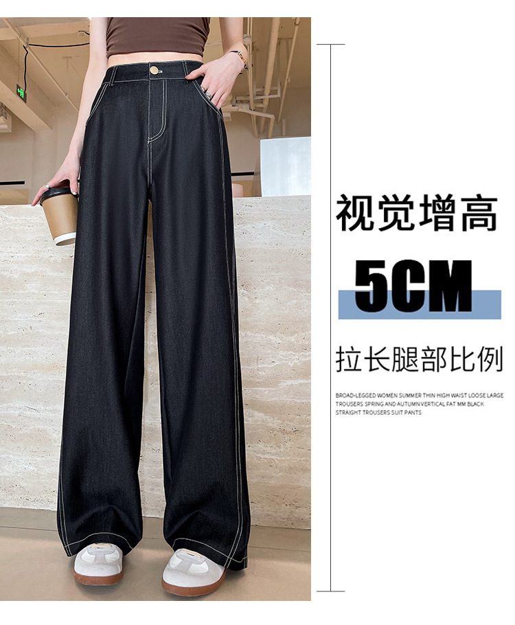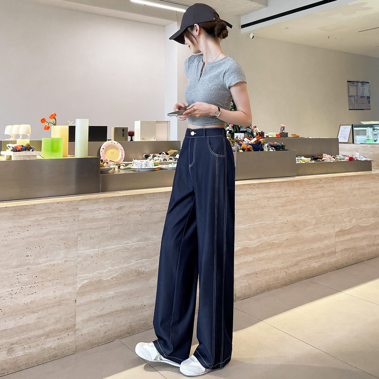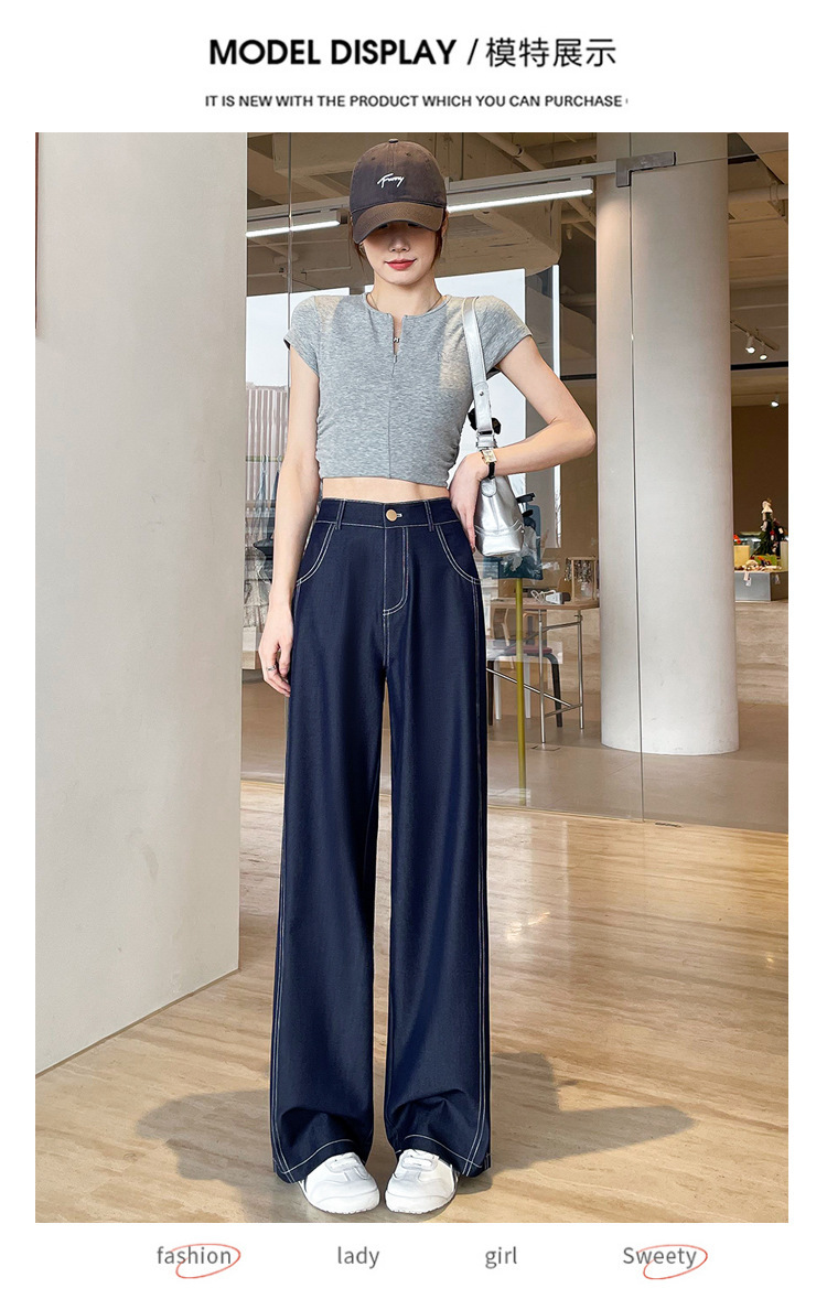 다크 블루 텐셀 소프트 청바지 여자 2025 여름 얇은 아이스 실크 와이드 다리 바지 좁은 캐주얼 스트레이트 바지스토어 가기