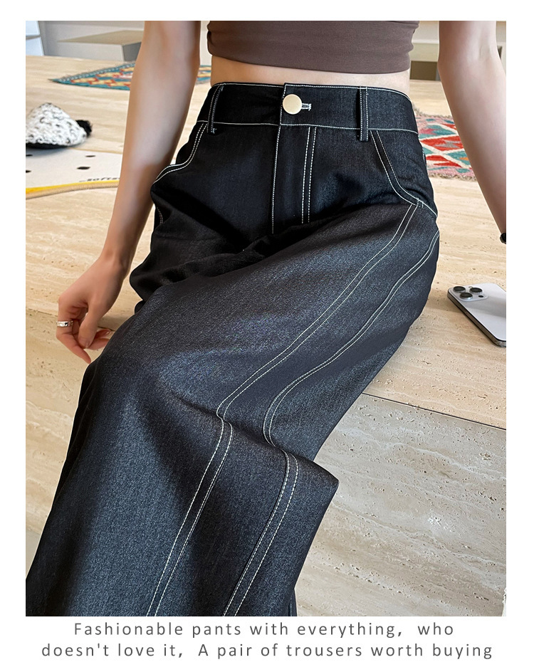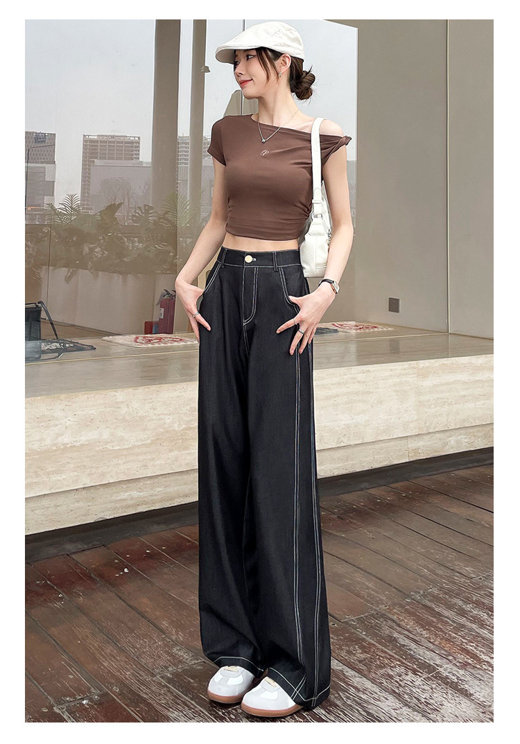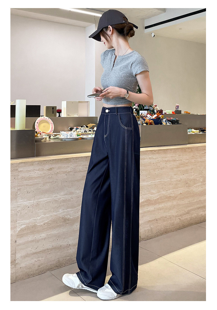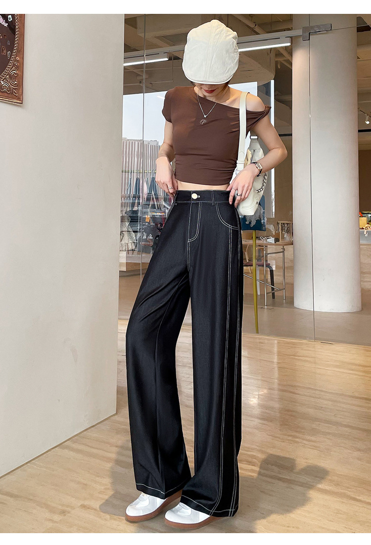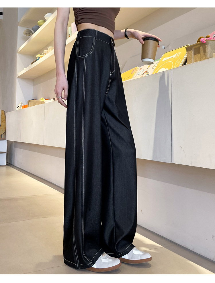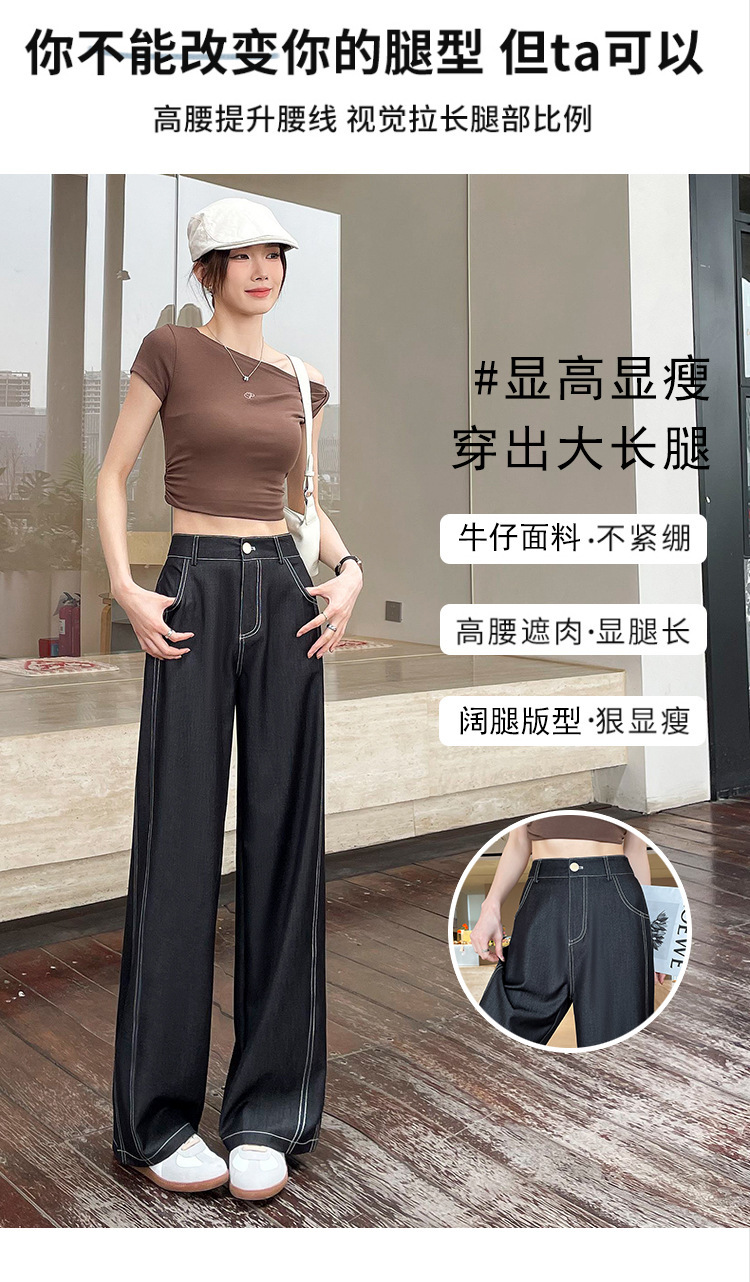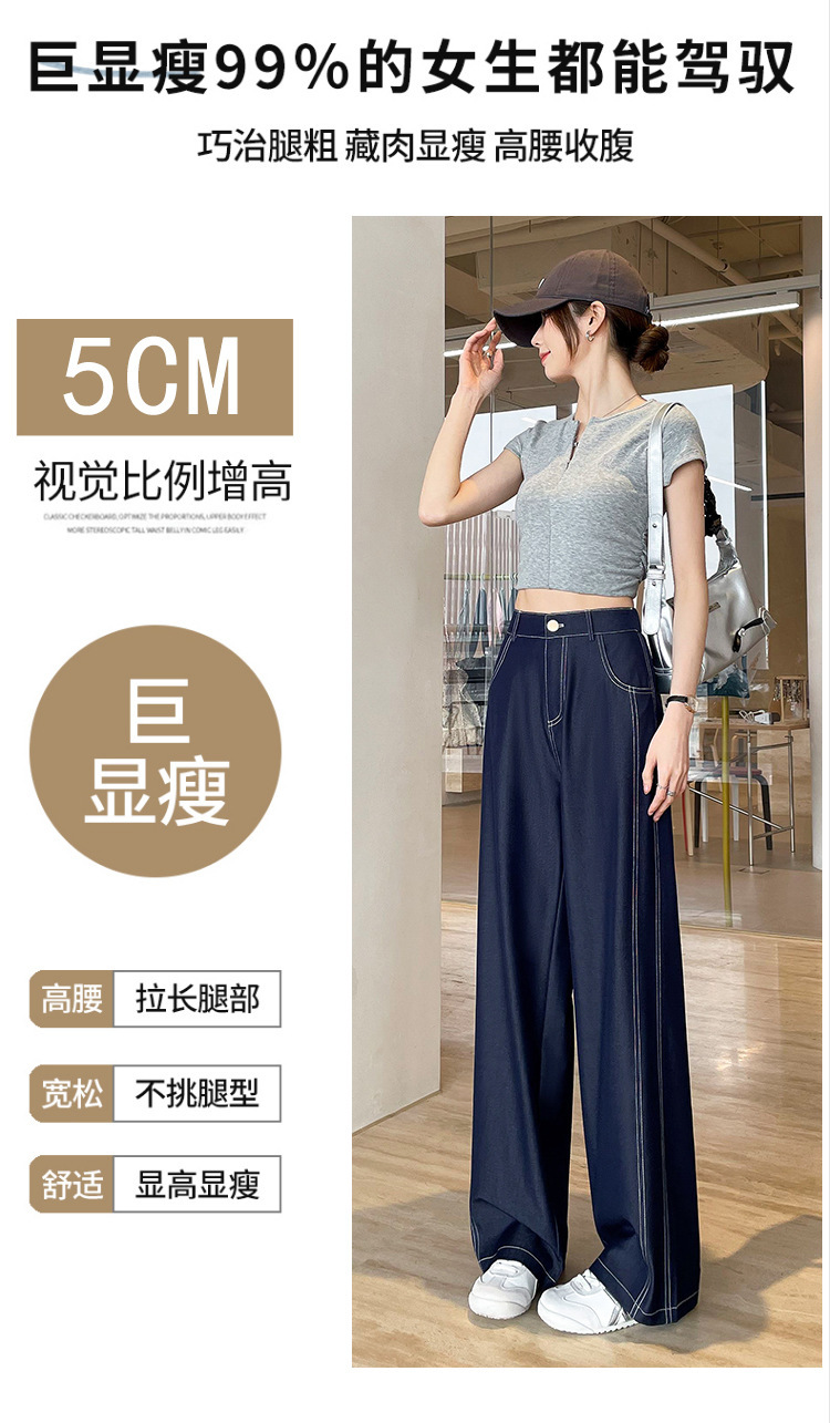 다크 블루 텐셀 소프트 청바지 여자 2025 여름 얇은 아이스 실크 와이드 다리 바지 좁은 캐주얼 스트레이트 바지스토어 가기