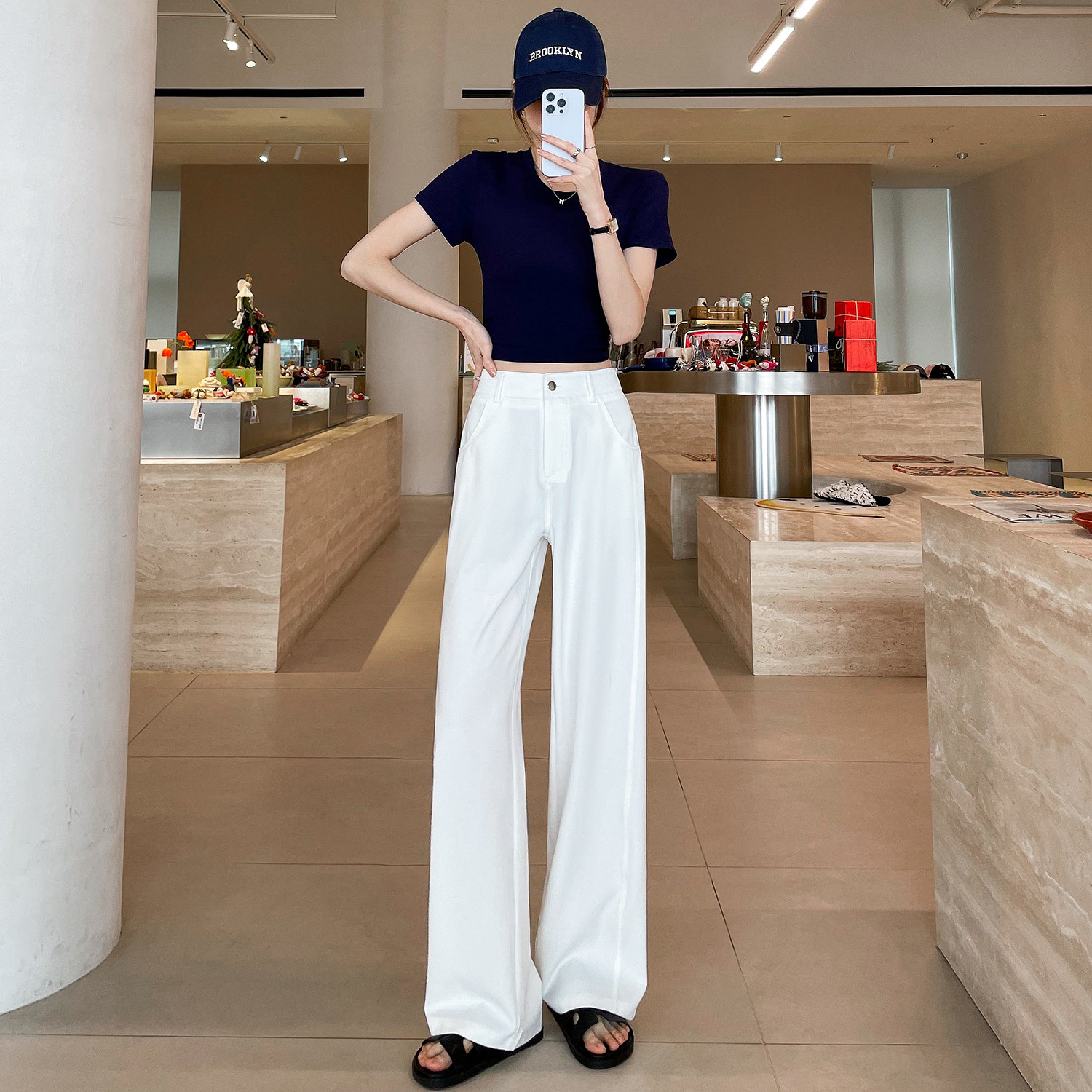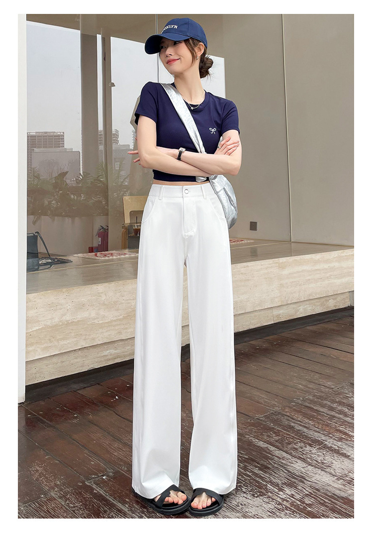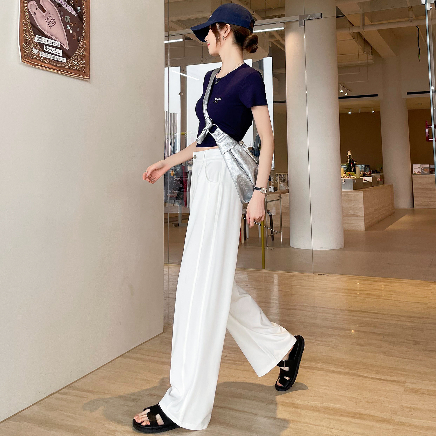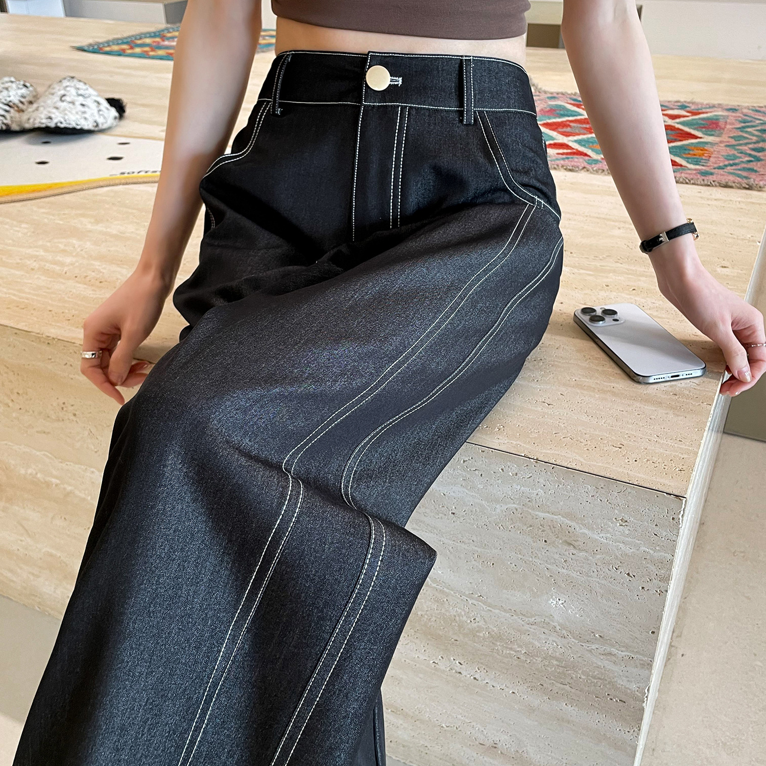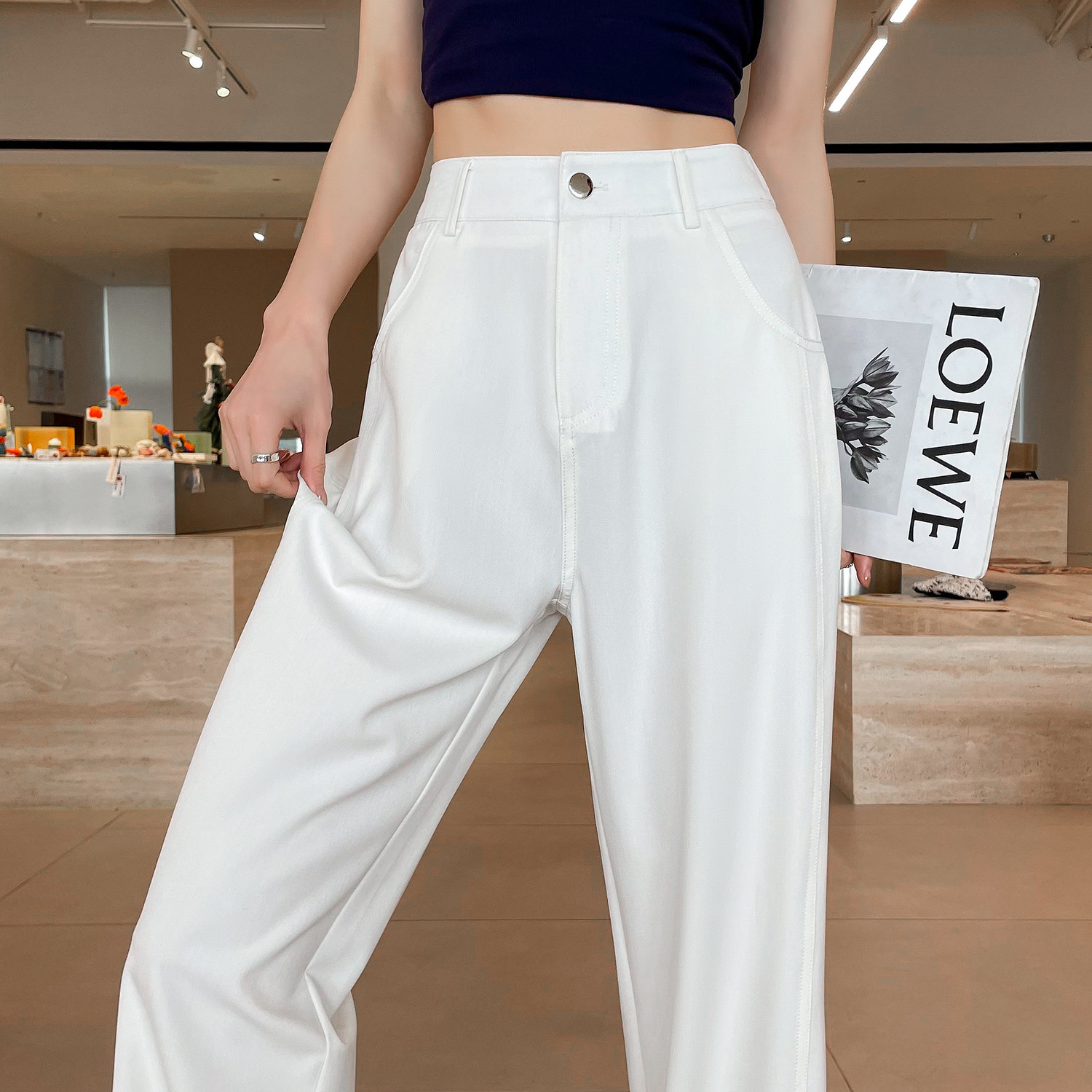 다크 블루 텐셀 소프트 청바지 여자 2025 여름 얇은 아이스 실크 와이드 다리 바지 좁은 캐주얼 스트레이트 바지스토어 가기