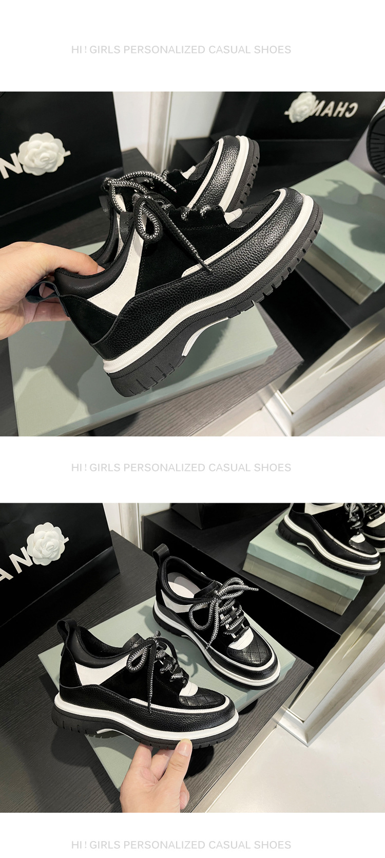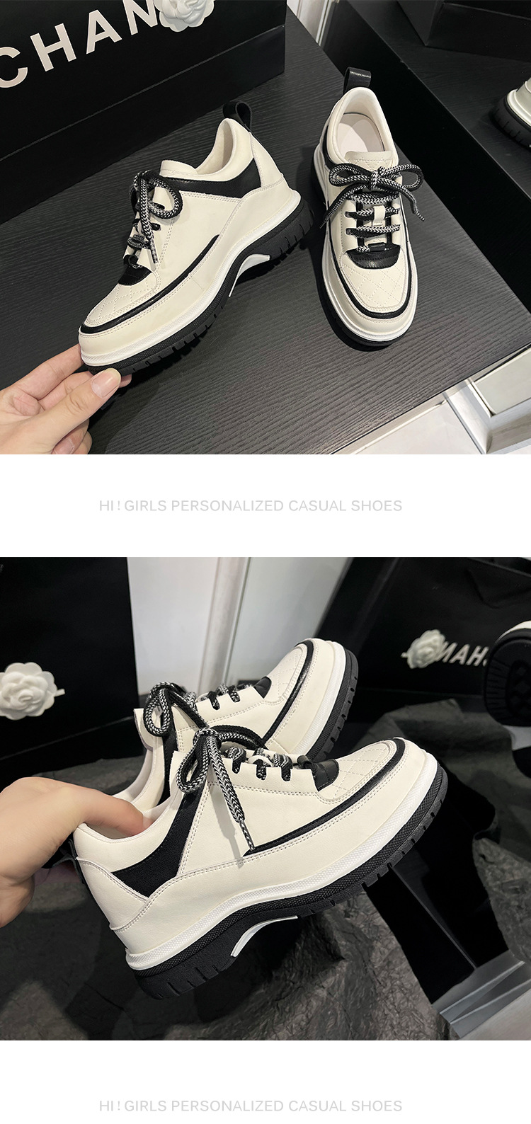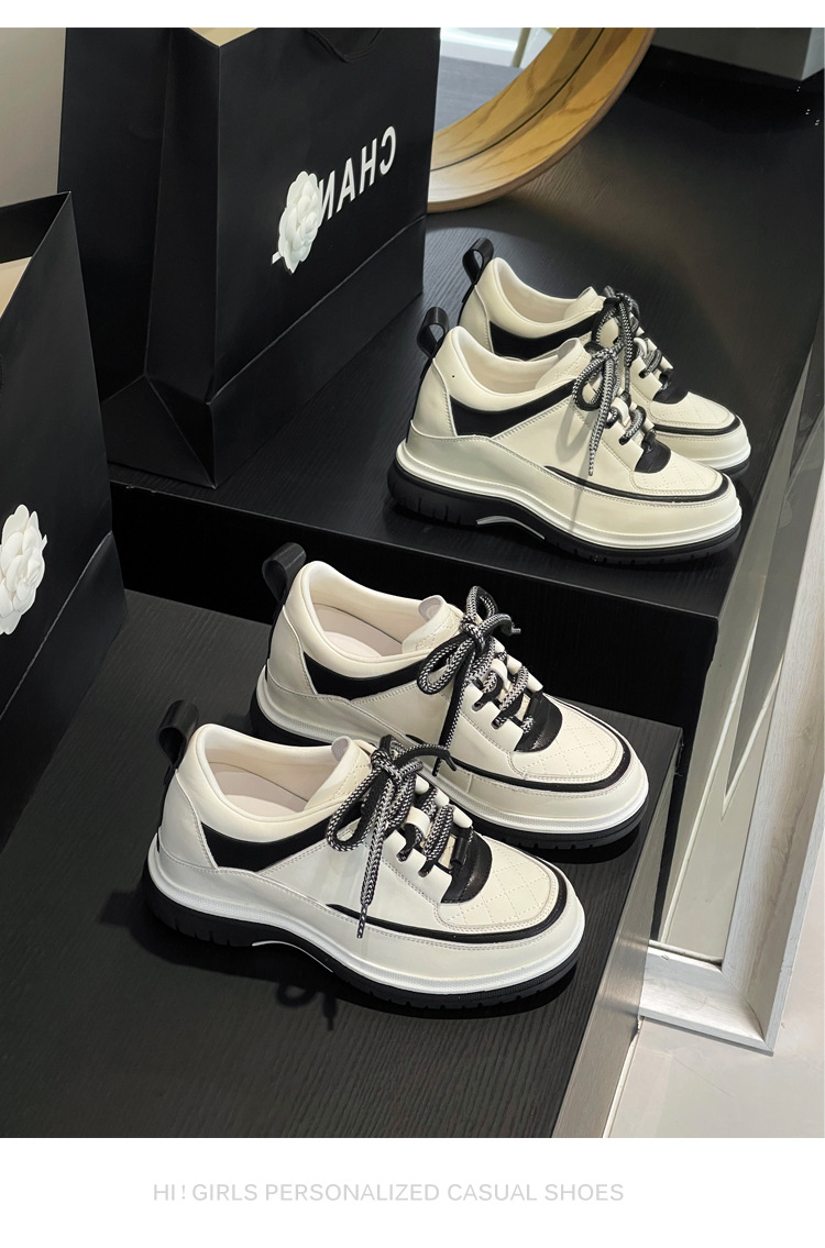 봄과 가을 새로운 스타일의 고급 작은 향기 스포츠 신발 여성 팬더 신발 두꺼운 밑창 8CM 작은 키가 큰 캐주얼 신발