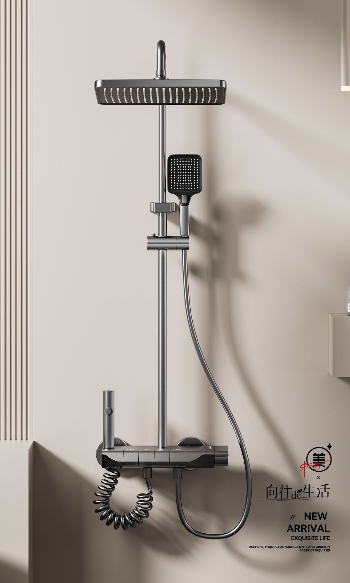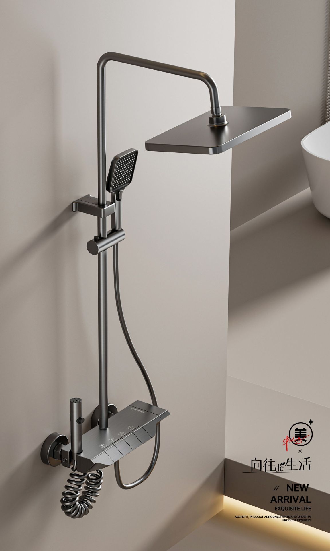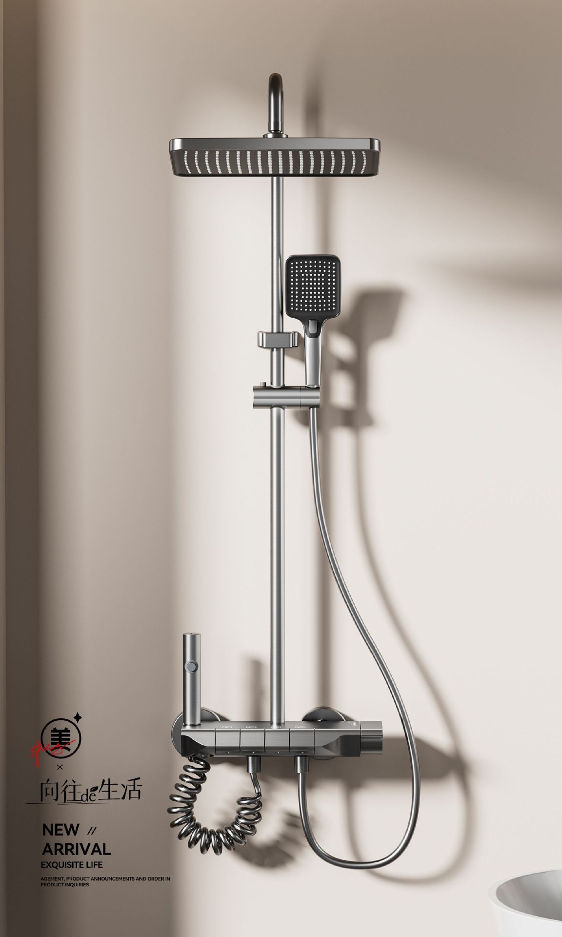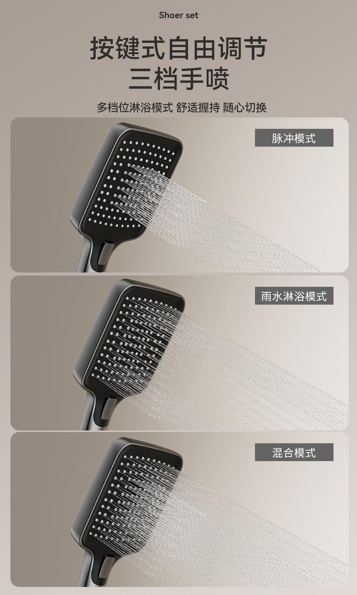 가정용 총 회색 샤워 헤드 세트 욕실 레인 부스터 샤워 헤드 샤워 도매 냉온수 샤워스토어 가기