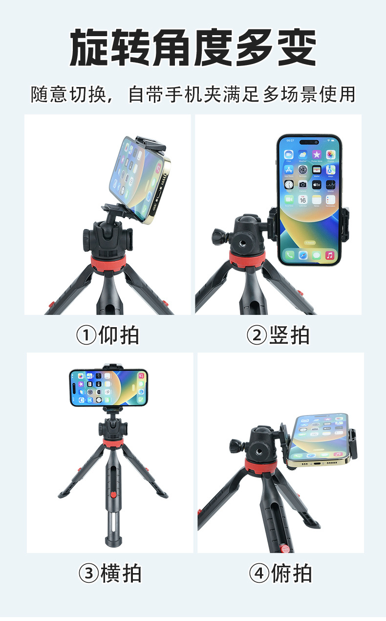 디제이 다기능 휴대용 데스크탑 삼각대 휴대폰 카메라 DSLR 겸용 휴대폰 거치대 내장형 휴대폰 클립 포함스토어 가기