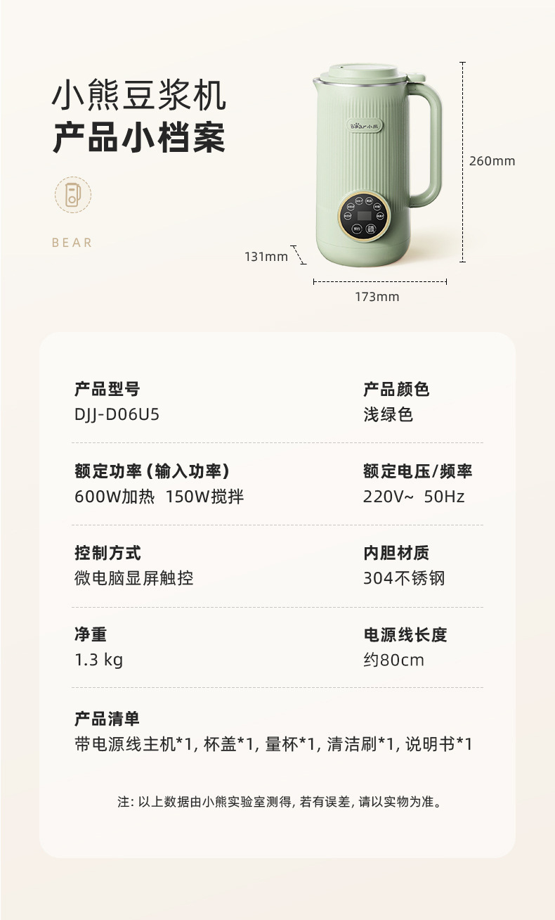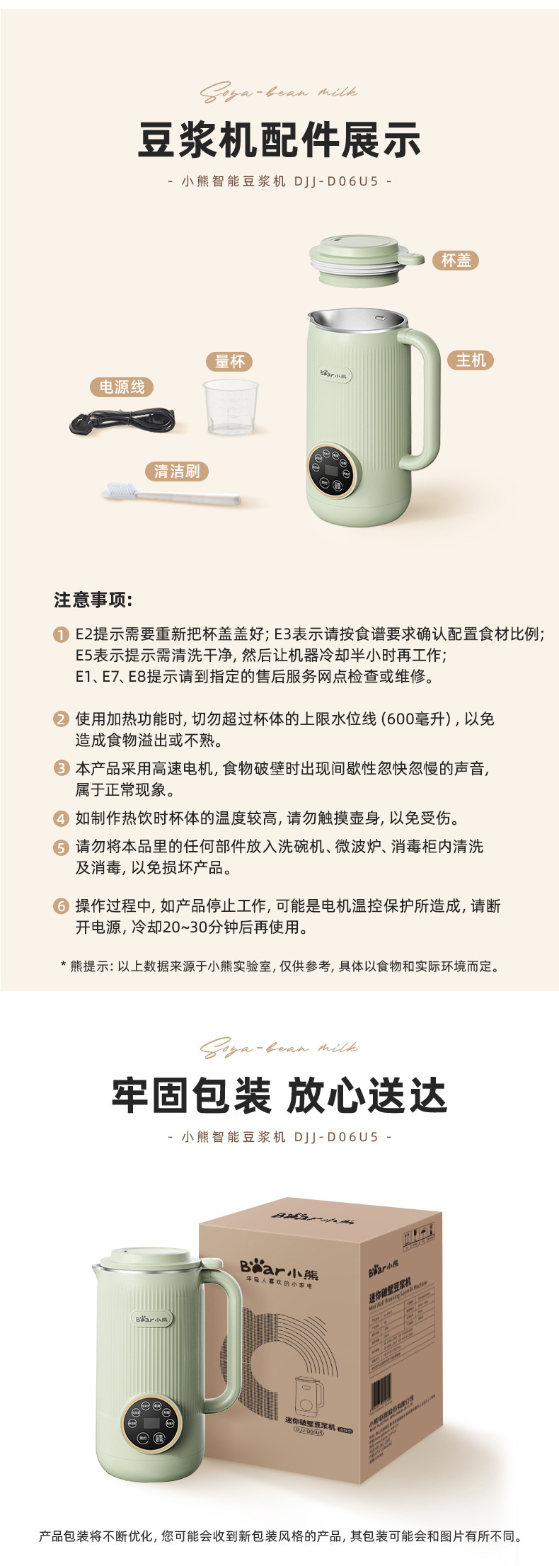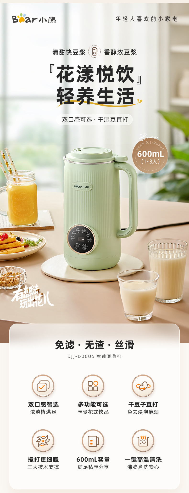 1~3인용 곰 두유기 DJJ-D06U5 가정용 전자동 다기능 무필터 소형 미니 벽파괴기