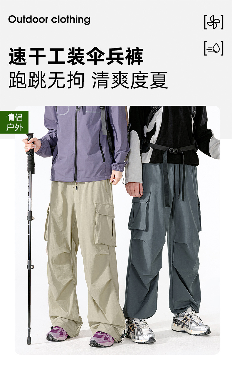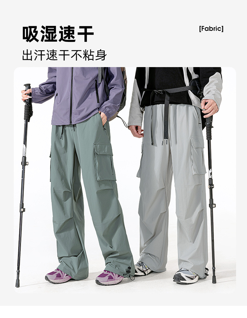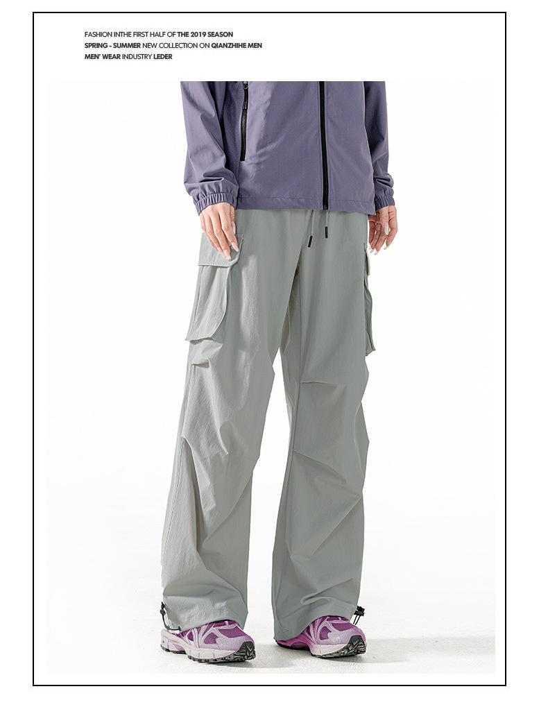 봄과 여름 낙하산 바지 야외 크록 바지 여성용 넓은 다리 바지 높은 허리 탄성 끈 발 하이킹 등산 바지스토어 가기