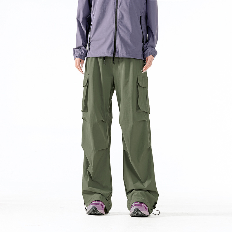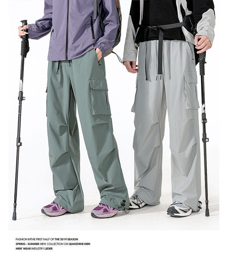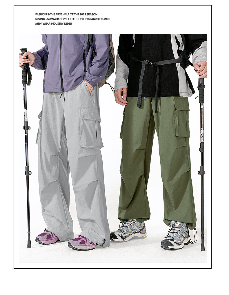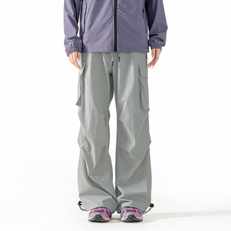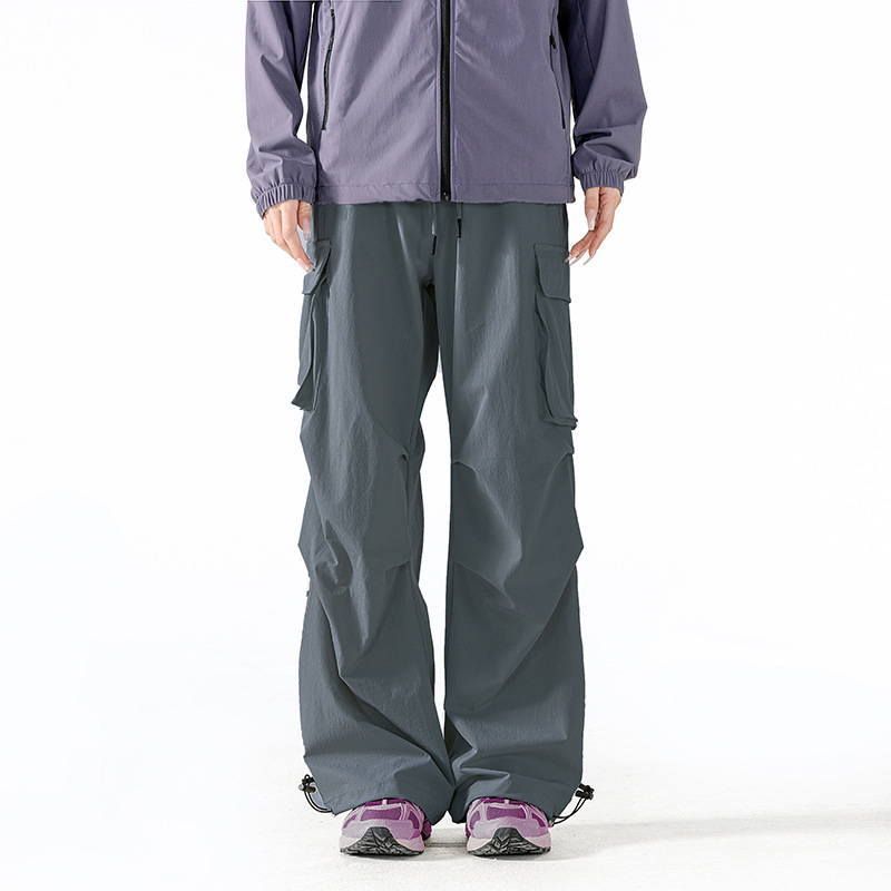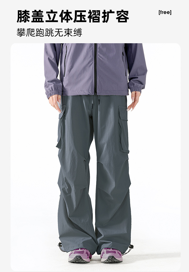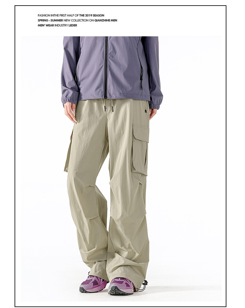 봄과 여름 낙하산 바지 야외 크록 바지 여성용 넓은 다리 바지 높은 허리 탄성 끈 발 하이킹 등산 바지