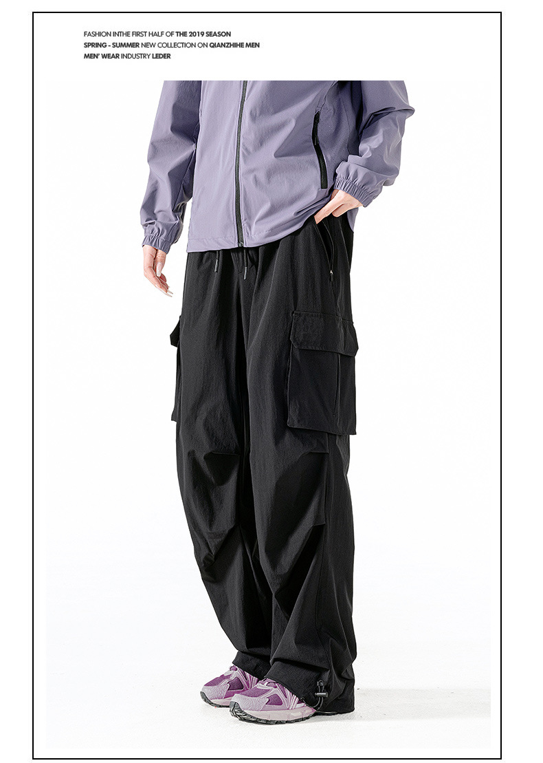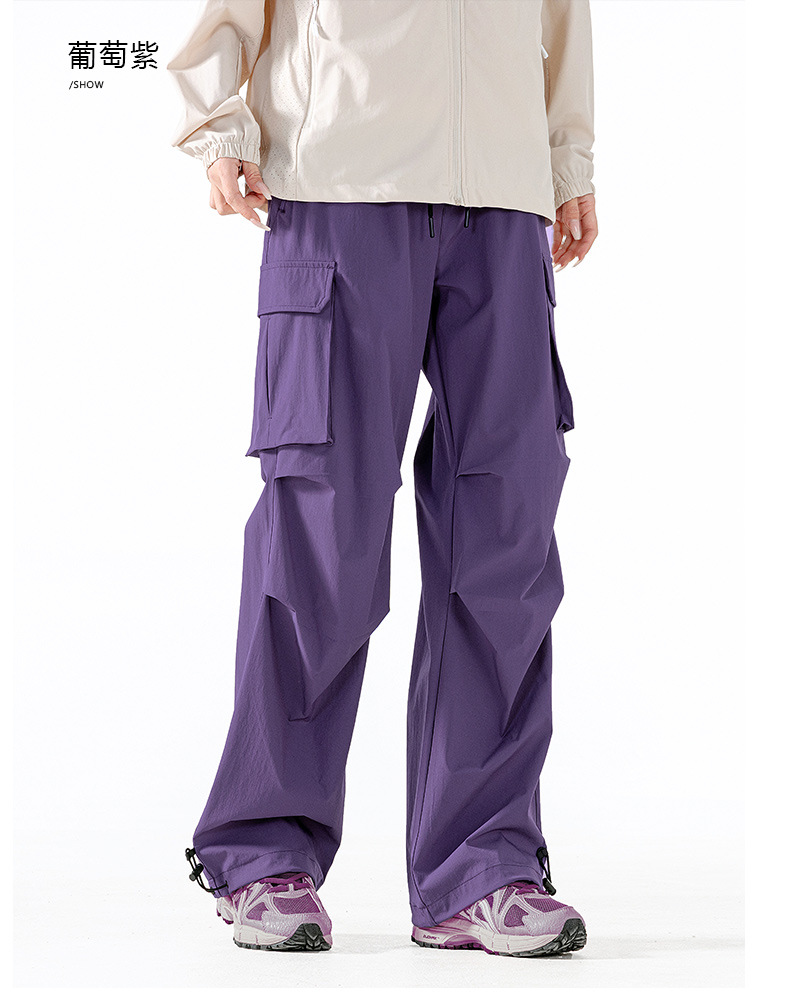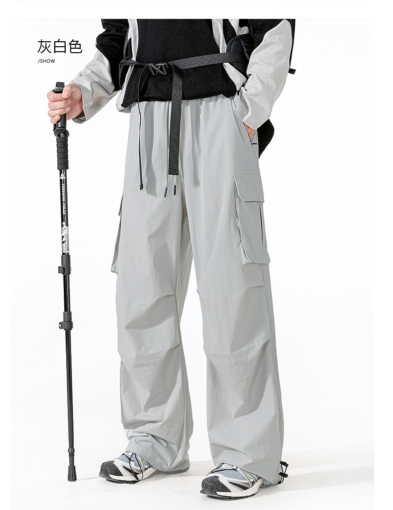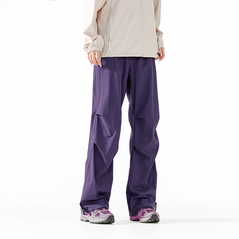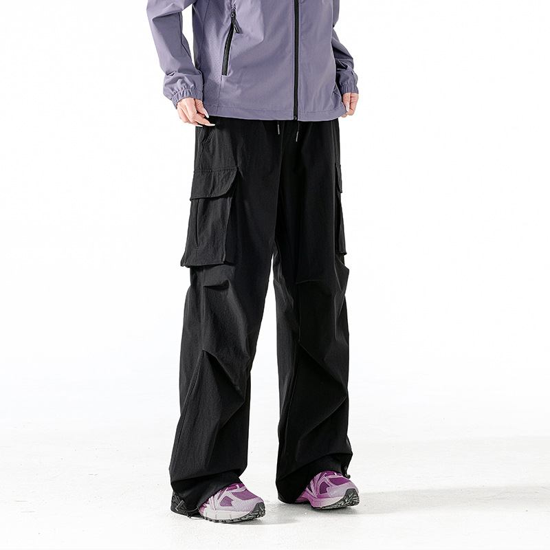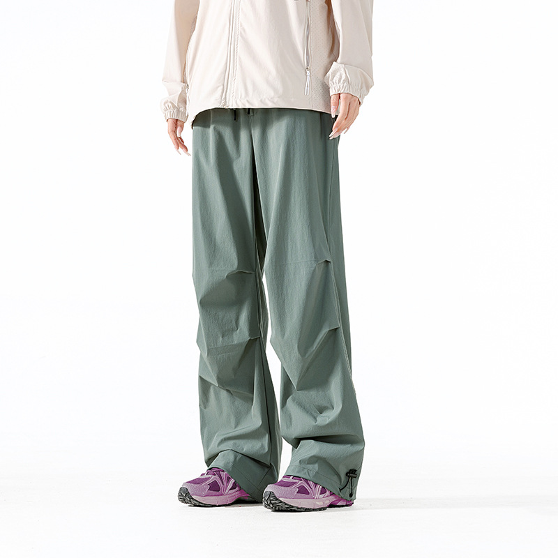 봄과 여름 낙하산 바지 야외 크록 바지 여성용 넓은 다리 바지 높은 허리 탄성 끈 발 하이킹 등산 바지