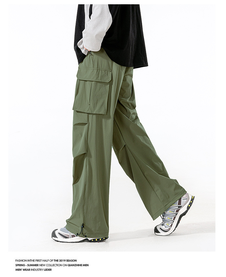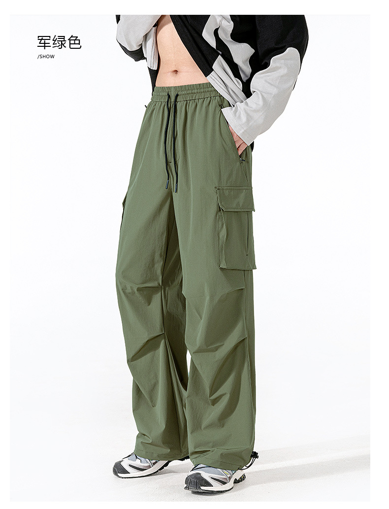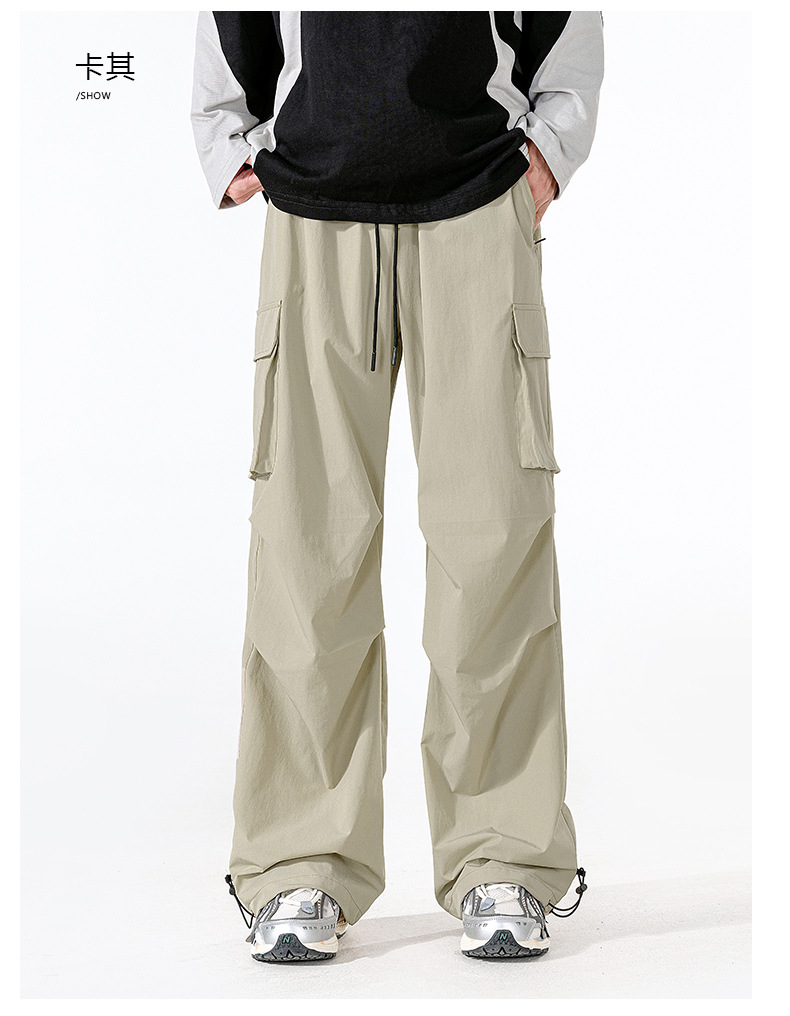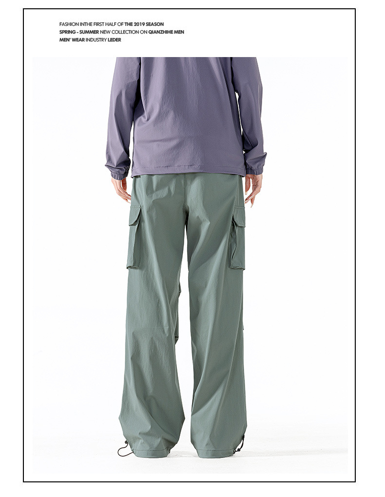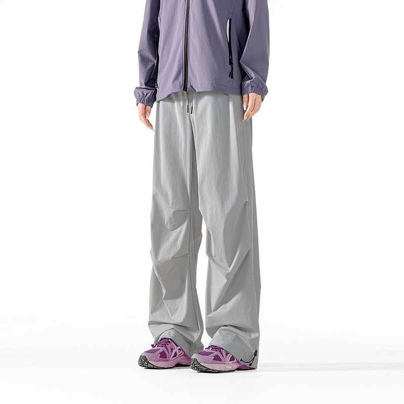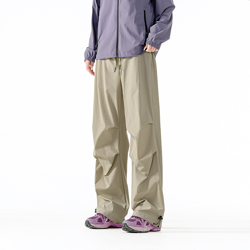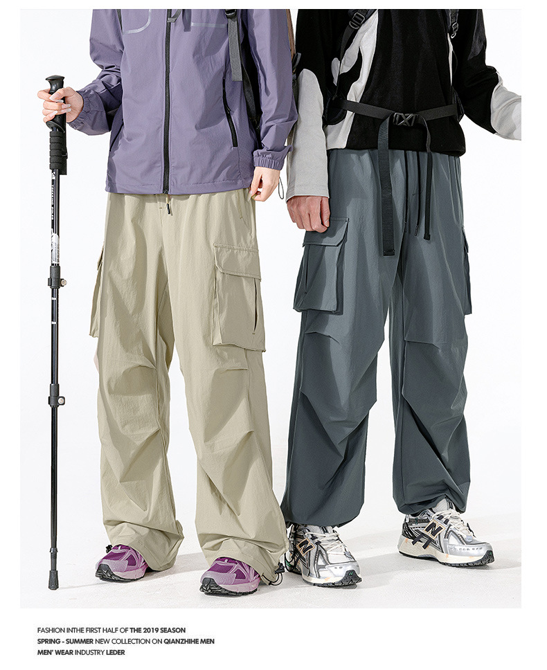 봄과 여름 낙하산 바지 야외 크록 바지 여성용 넓은 다리 바지 높은 허리 탄성 끈 발 하이킹 등산 바지