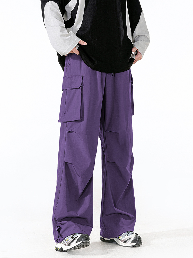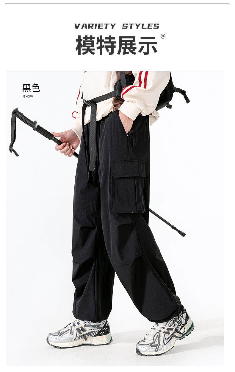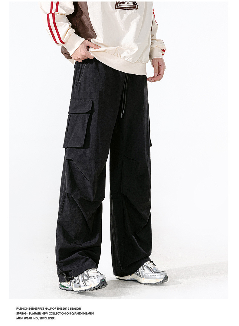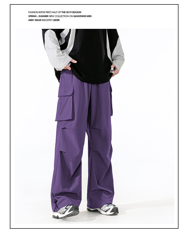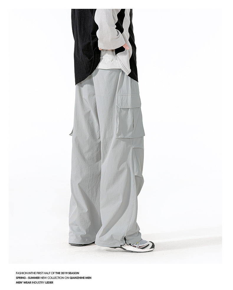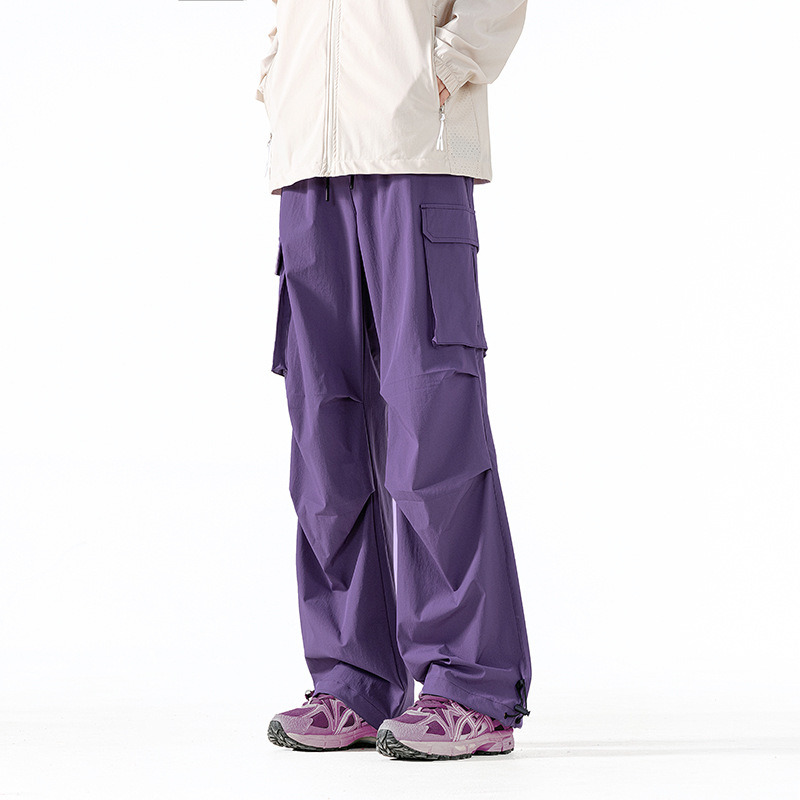 봄과 여름 낙하산 바지 야외 크록 바지 여성용 넓은 다리 바지 높은 허리 탄성 끈 발 하이킹 등산 바지
