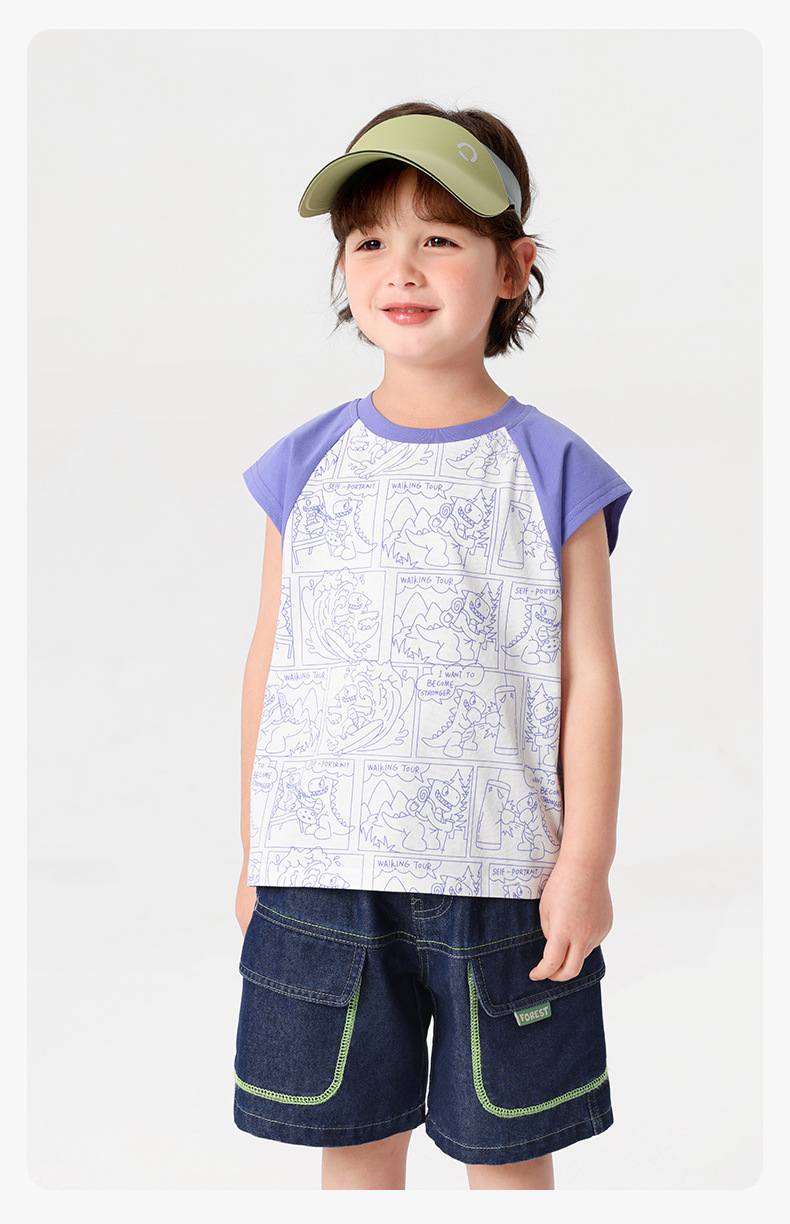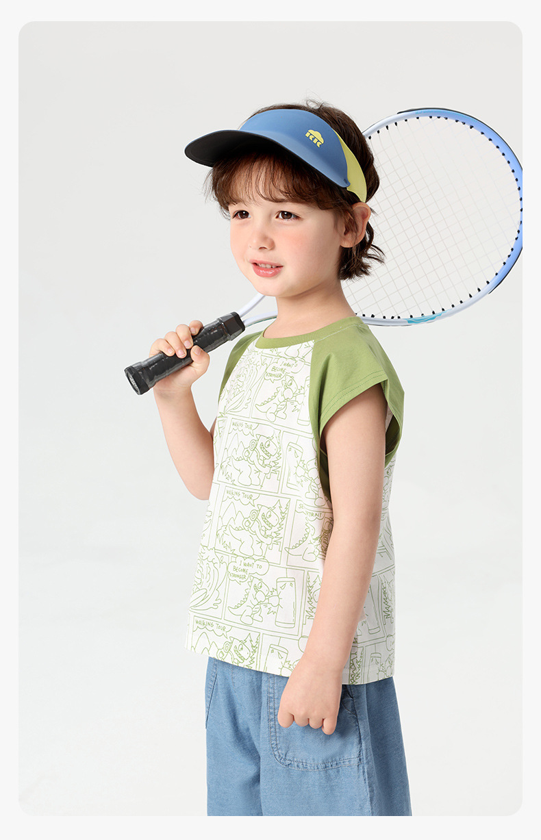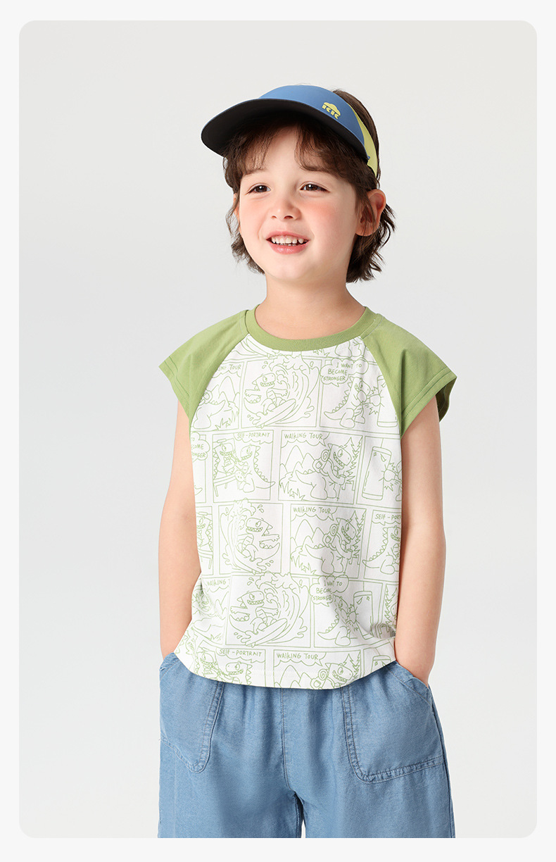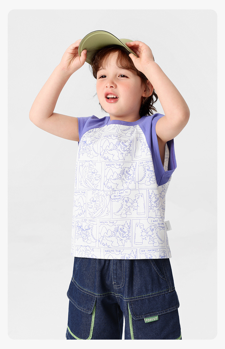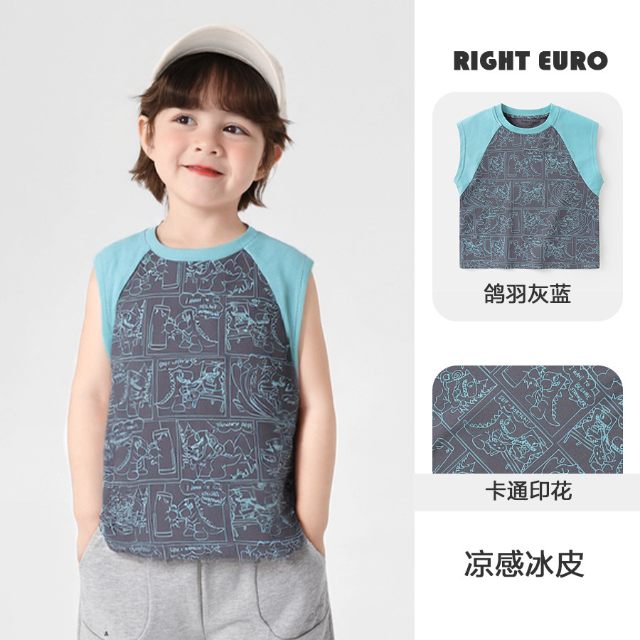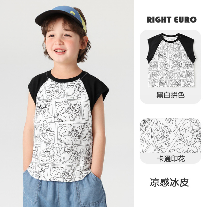 오른쪽 유럽 소년 조끼 여름 2025 새로운 아동복 어린이 아기 작은 소년 민소매 티셔츠 여름 얇은스토어 가기