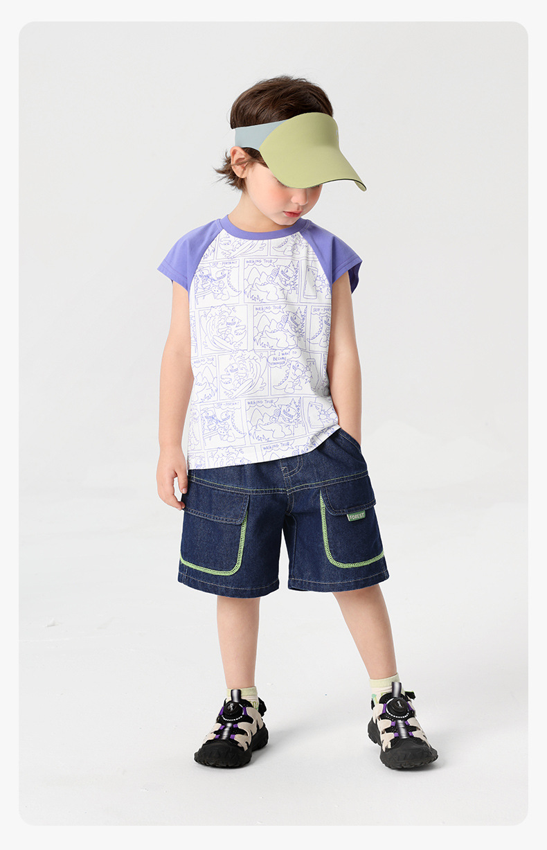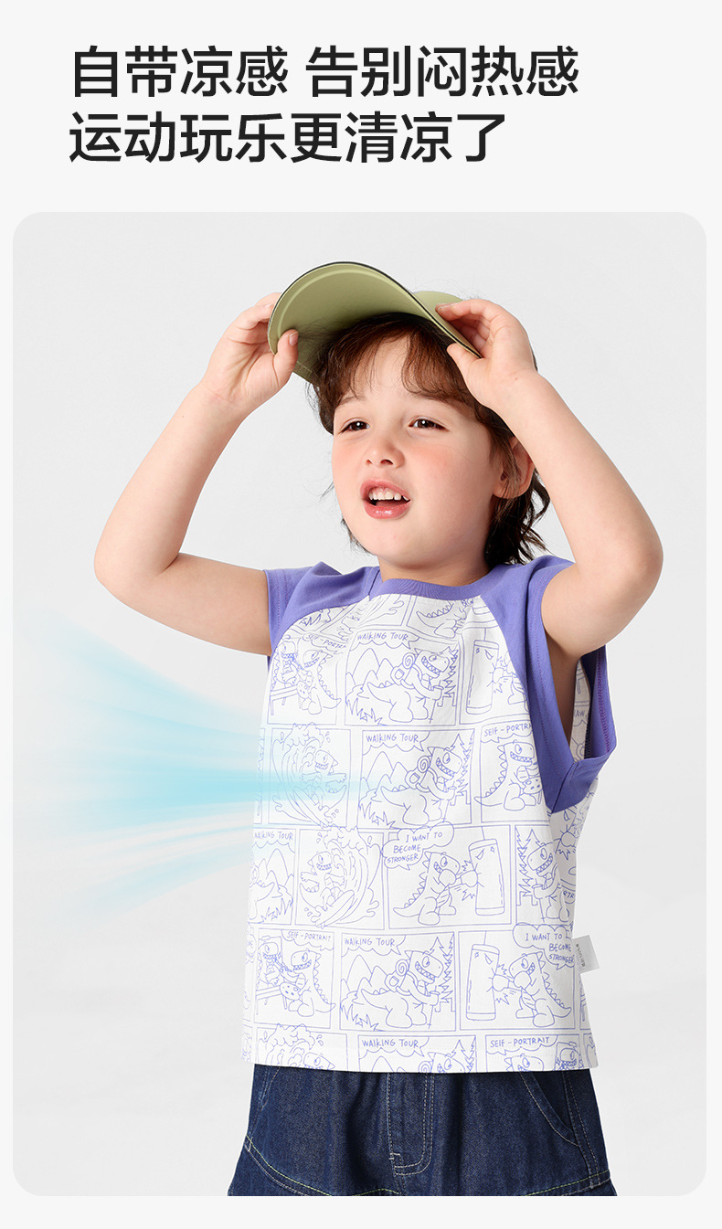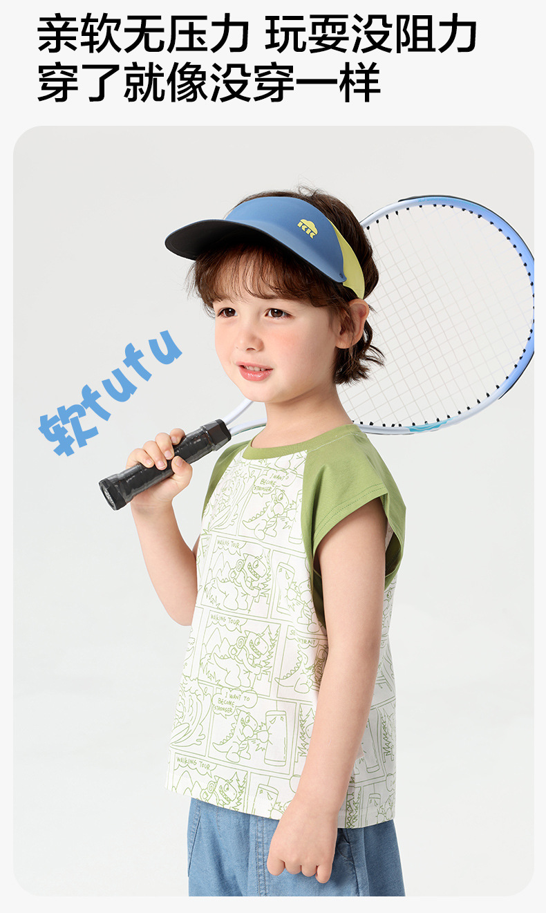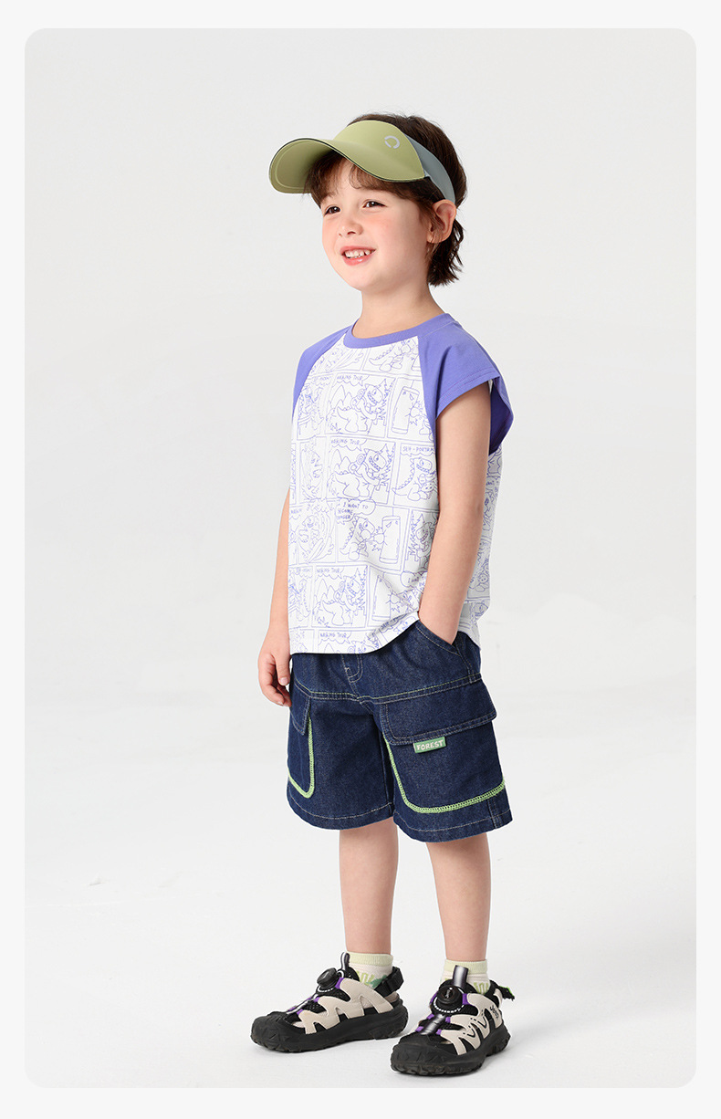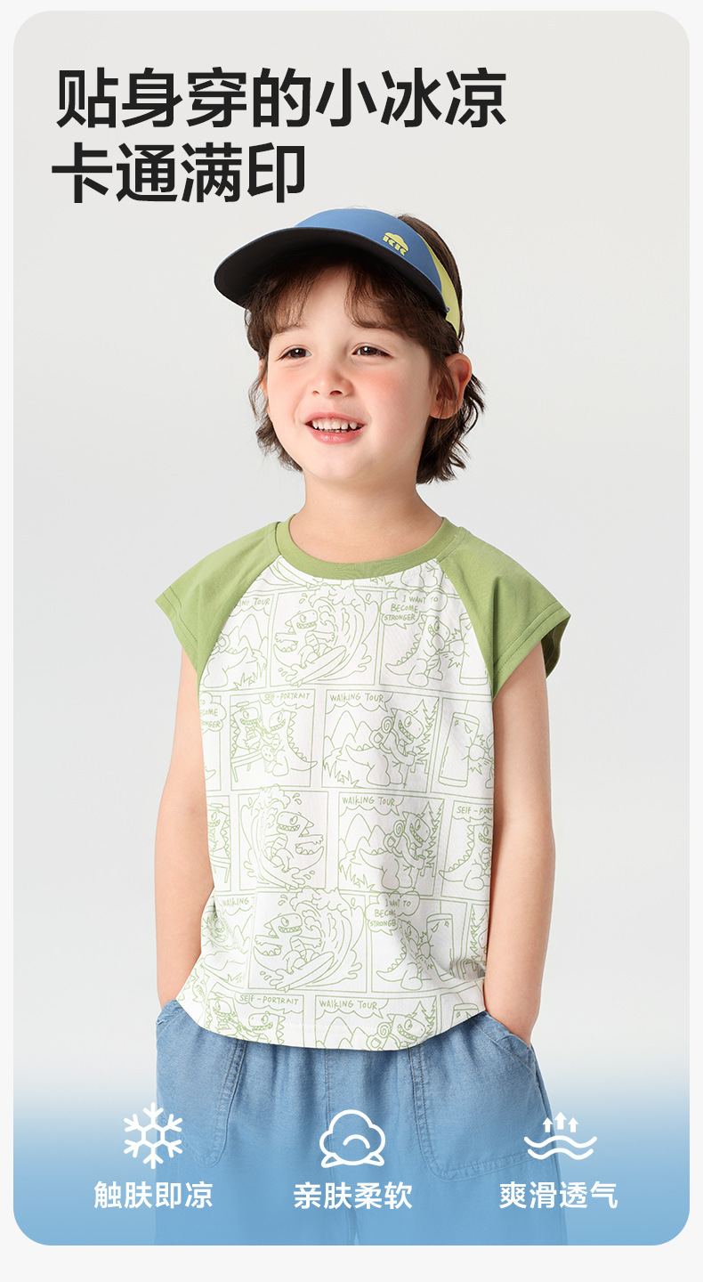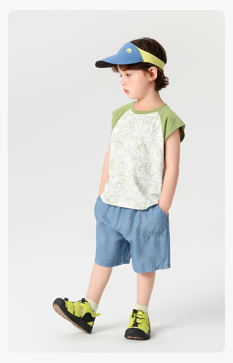 오른쪽 유럽 소년 조끼 여름 2025 새로운 아동복 어린이 아기 작은 소년 민소매 티셔츠 여름 얇은스토어 가기