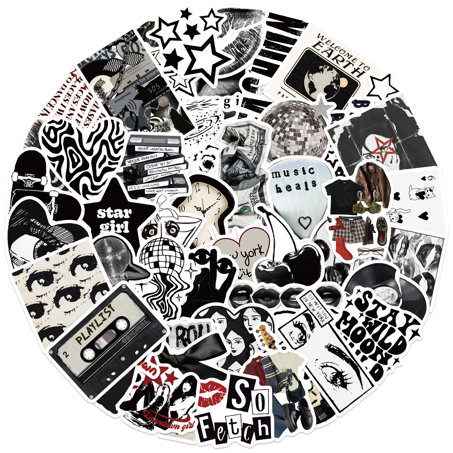 50 Y2K 흑백 손 계정 스티커 방수 귀여운 복고풍 diy 작은 카드 장식 수하물 기타 스티커