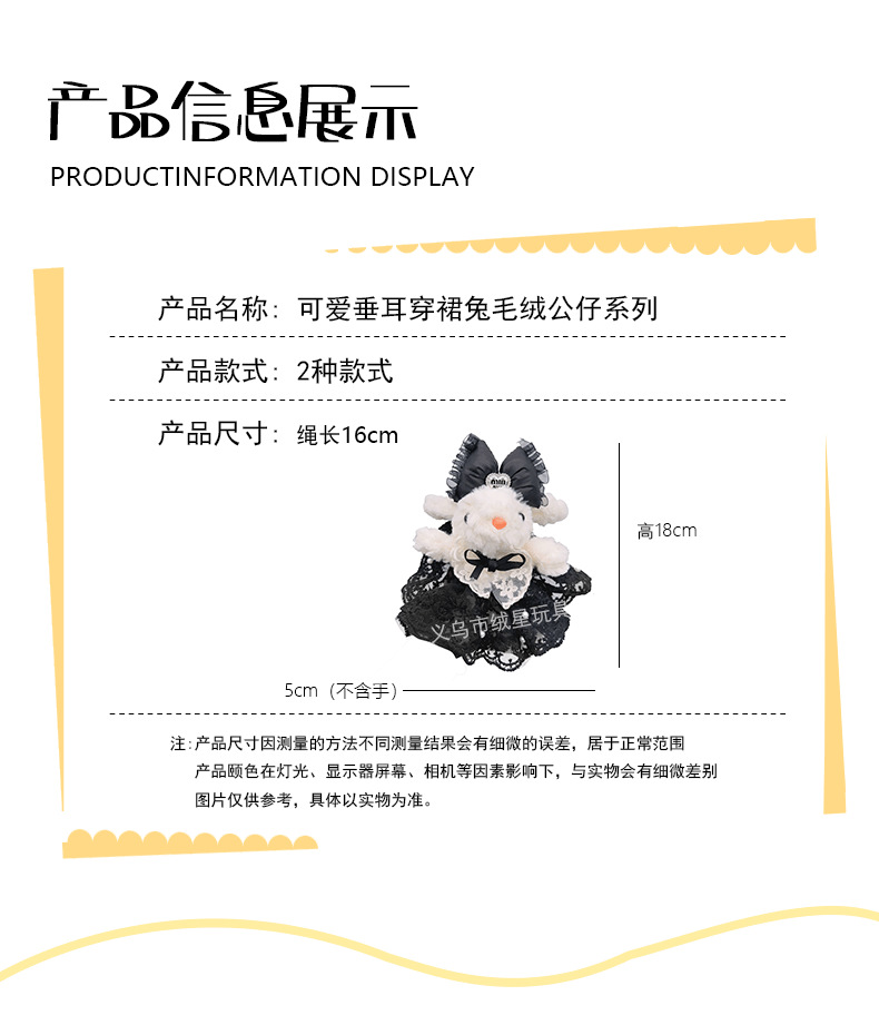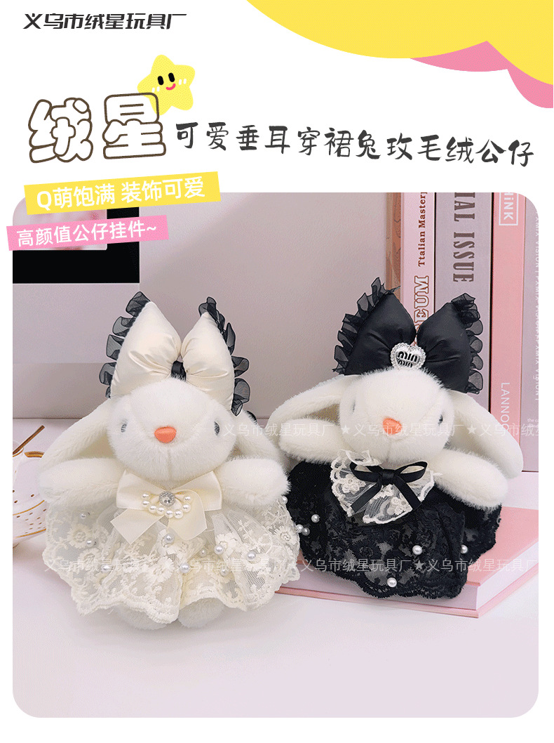 새로운 귀 매달린 토끼 인형 펜던트 봄과 여름 레이스 원피스 활 달콤한 귀여운 토끼 인형 선물스토어 가기