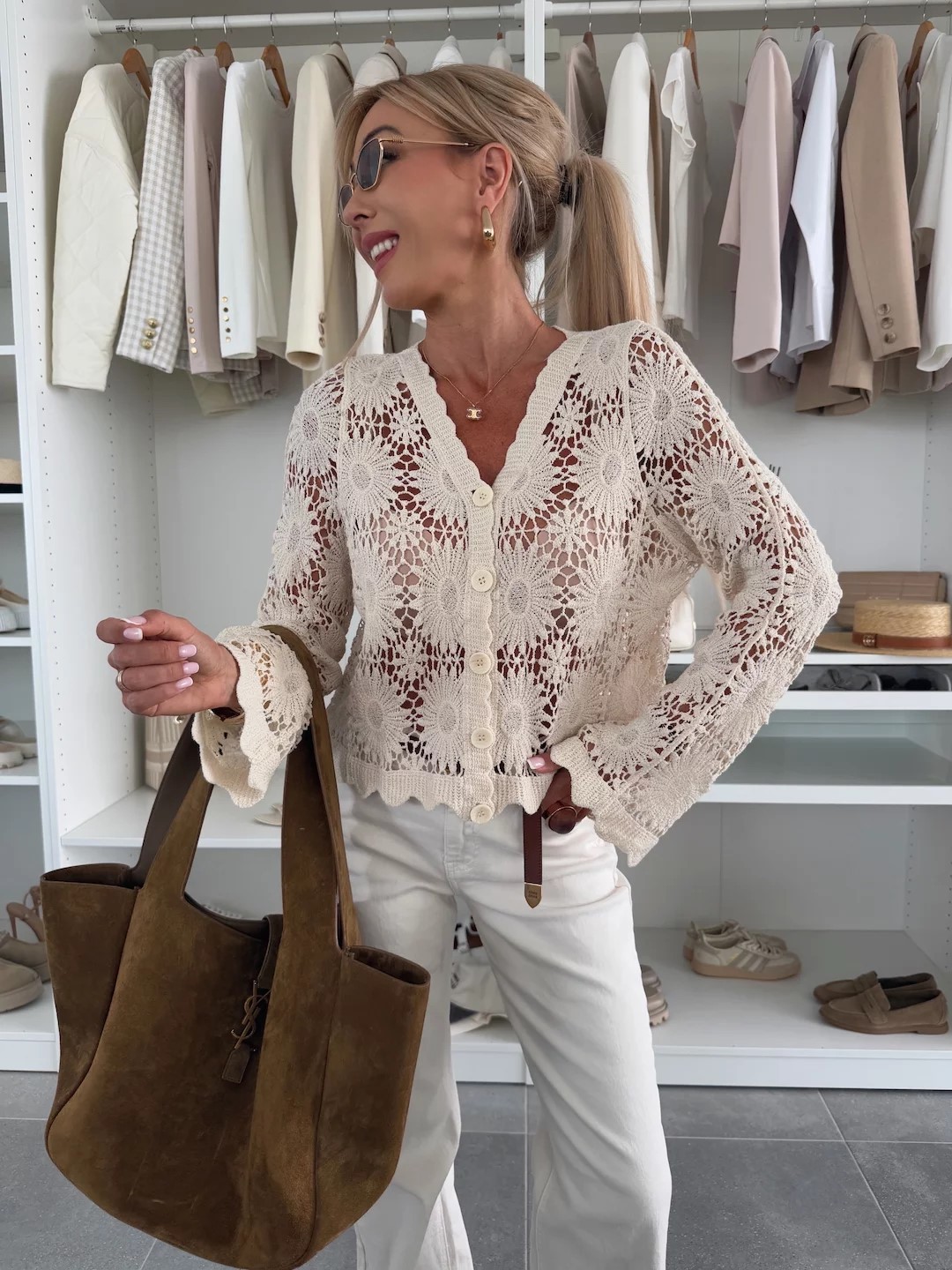 2025 유럽과 미국의 국경 간 러시아 여성의 새로운 스타일 중공 니트 긴팔 v 넥 느슨한 카디건 에어컨 자외선 차단 셔츠스토어 가기