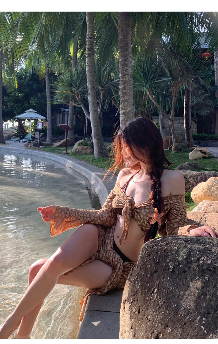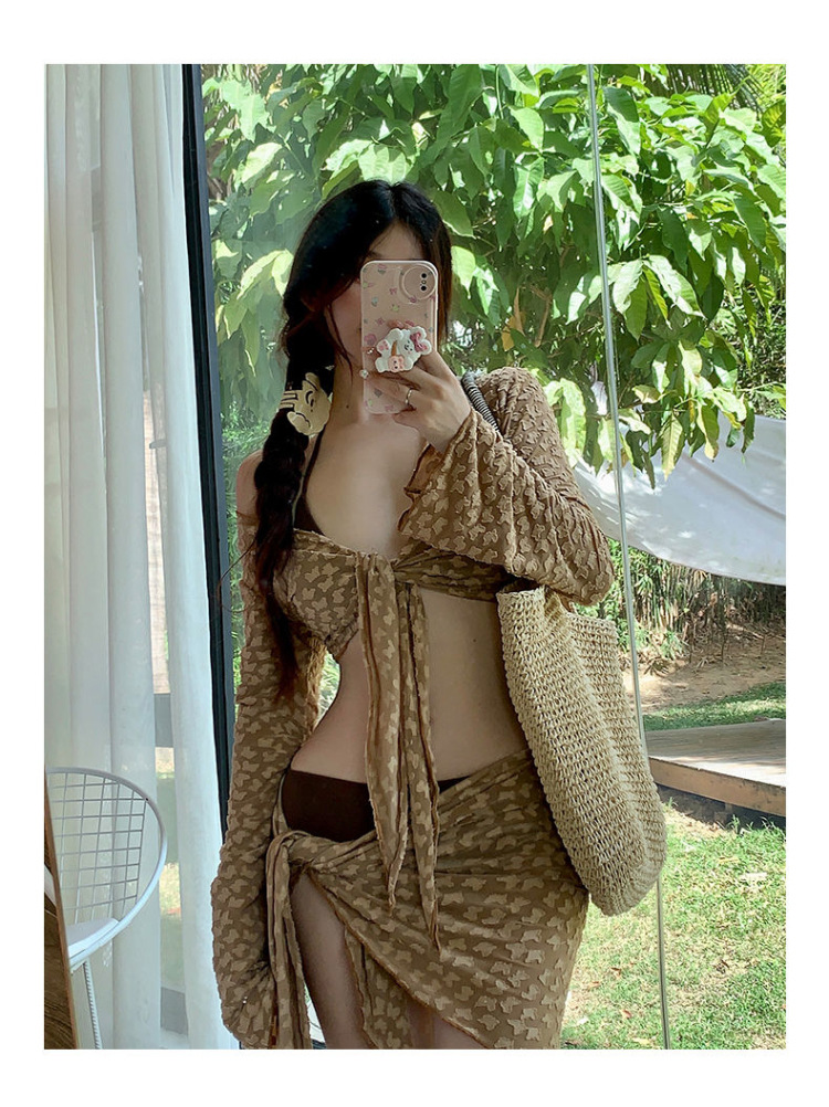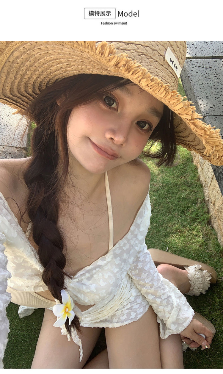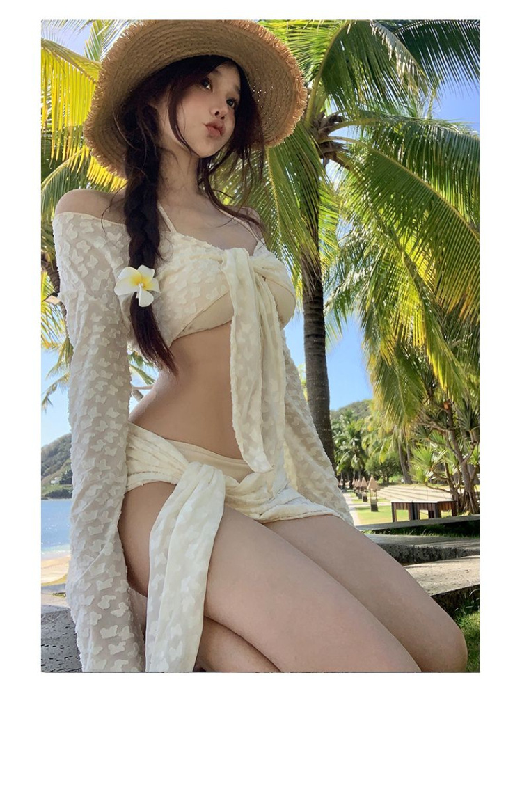 순수한 욕망 스타일의 비키니 4피스 스위트 하트 핫 소녀 스플릿 수영복 여성용 작은 가슴 슬리밍 긴 소매 살을 덮는 하이 엔드스토어 가기