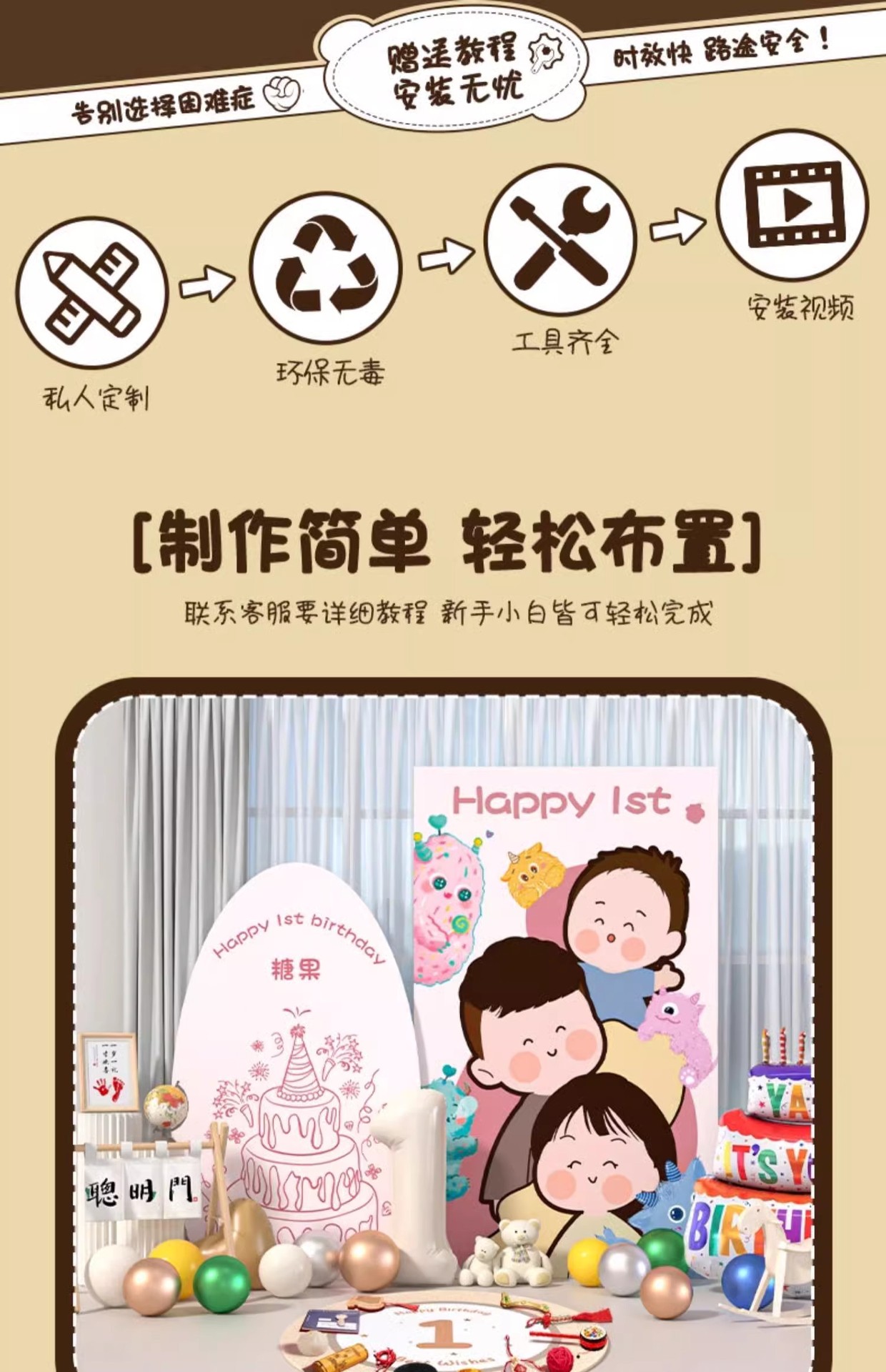 한국 스타일 첫 번째 생일 장식 장면 장식 배경 소년과 소녀 베이비 파티 KT 보드 생일 소품 세트스토어 가기