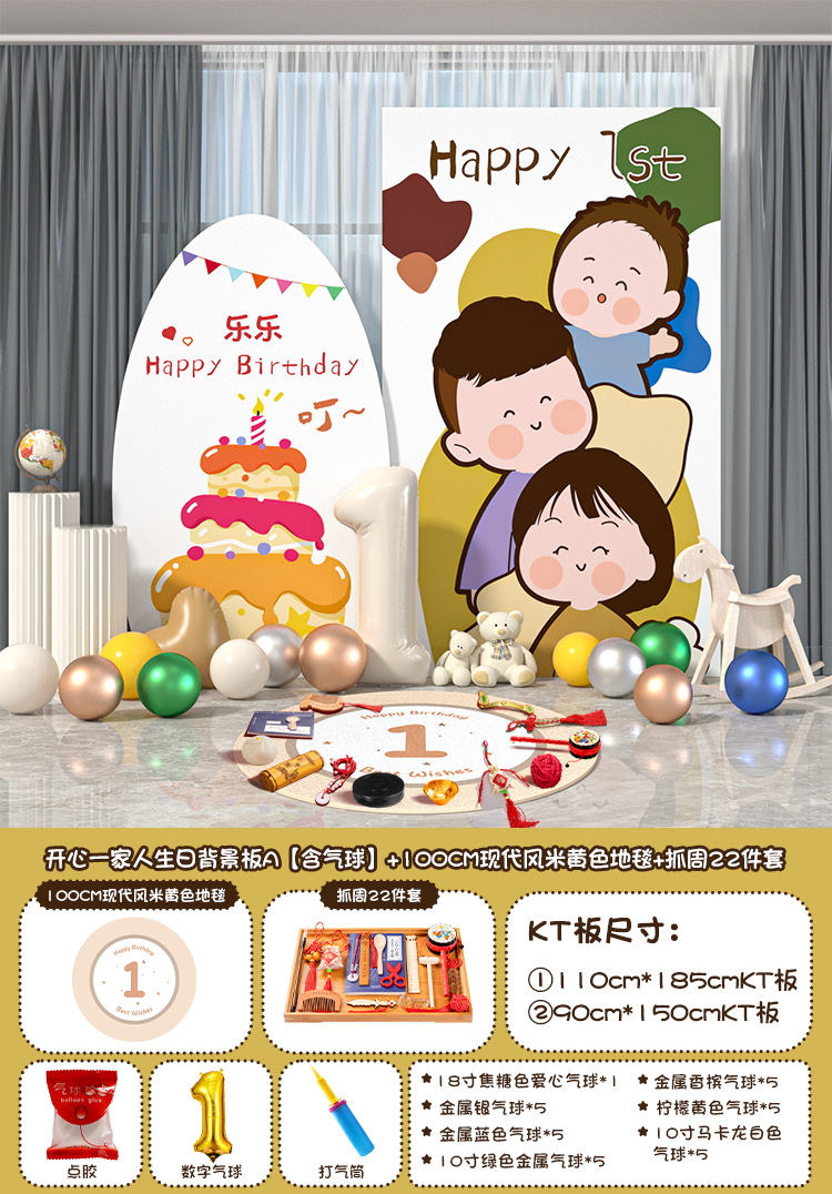 • [3인가족] 해피패밀리 생일 배경판 B [풍선포함] + 100CM 모던 스타일 베이지 카펫 + 22종 세트 + 1년에 1개 선물