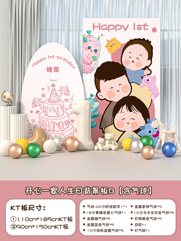 • [3인가족] 해피패밀리 생일 배경판 A [풍선포함]