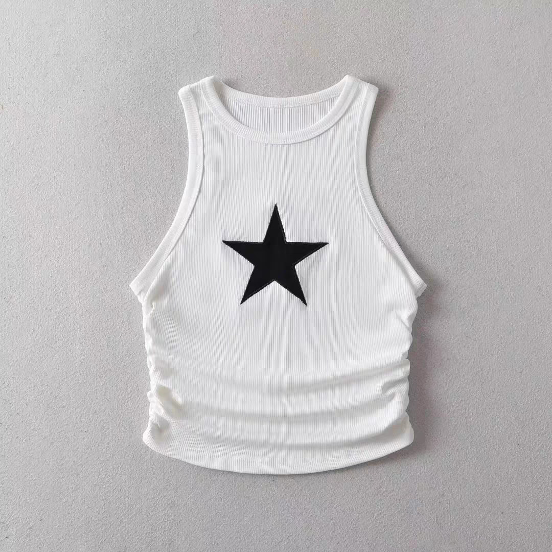 소녀 여름 조끼 아기의 서양식 어린이 맞춤형 트렌디 브랜드 스트리트 댄스 유행 별 스티커 주름 짧은 상단