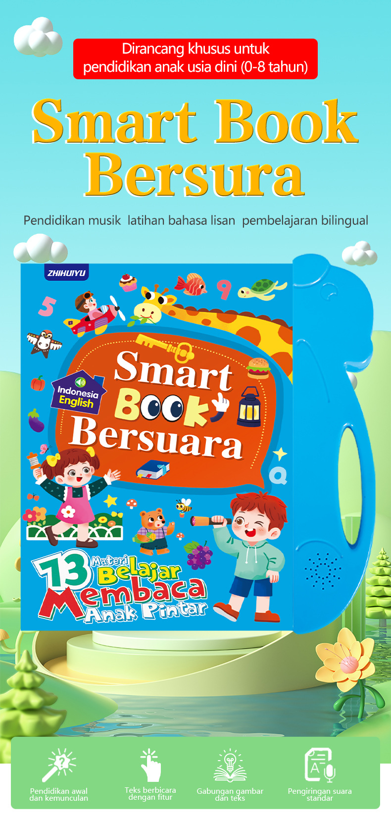 인도네시아어와 영어로 된 어린이 조기 교육용 이중 언어 오디오 전자책, 이중 언어 해외 무역 수출스토어 가기