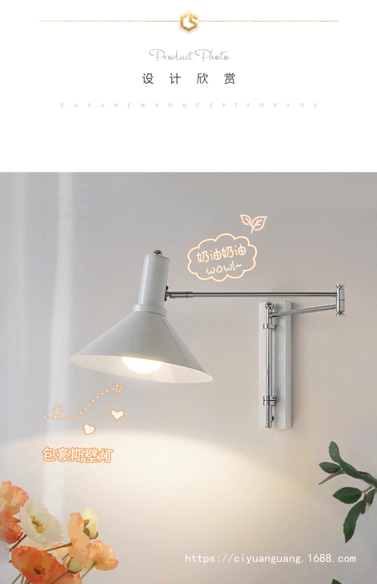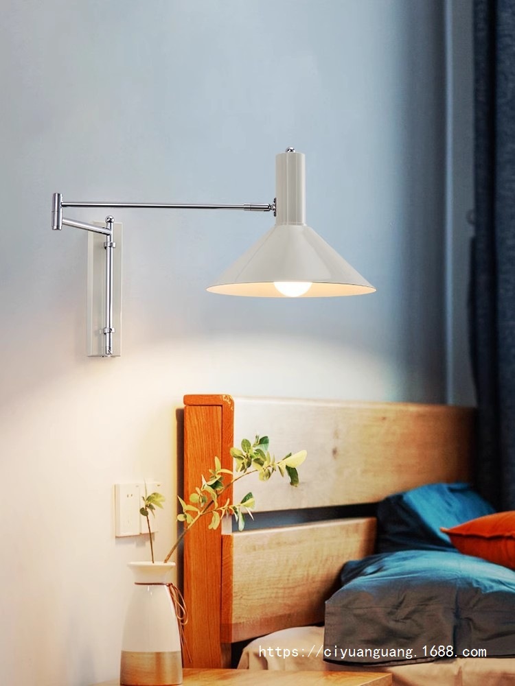 북유럽 현대 바우 하우스 침대 옆 접이식 벽 램프 중간 고대 간단한 침실 바 스트레치 로커 벽 램프