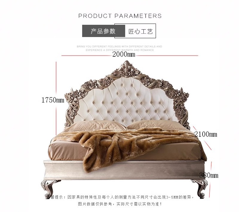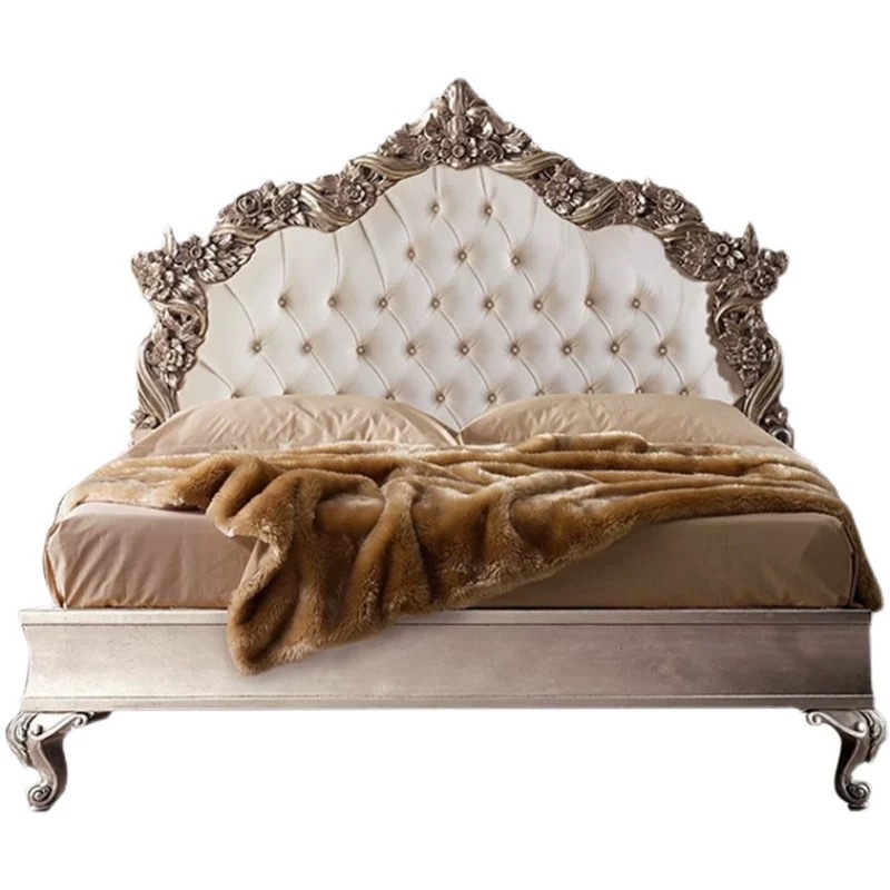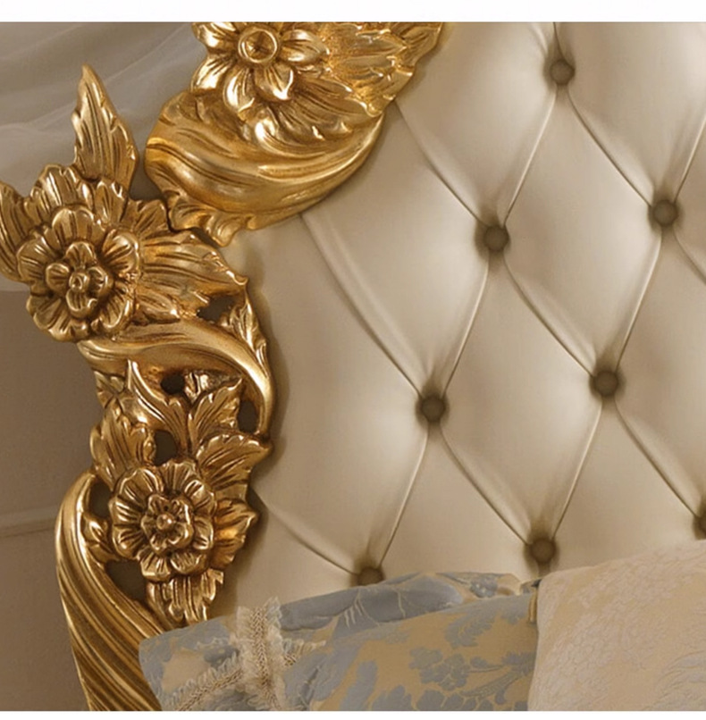 마스터 침실 더블 침대 유럽식 솔리드 우드 프린세스 침대 인터넷-유명한 프레임 조각 가죽 침대 프랑스 스타일 골드 호일 웨딩 침대 침실 큰 침대