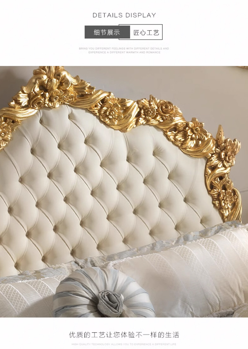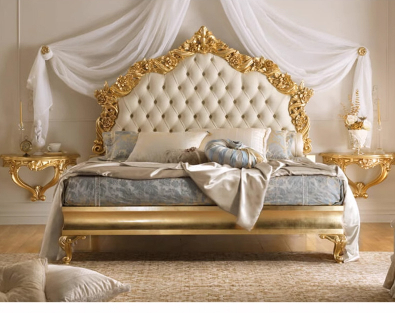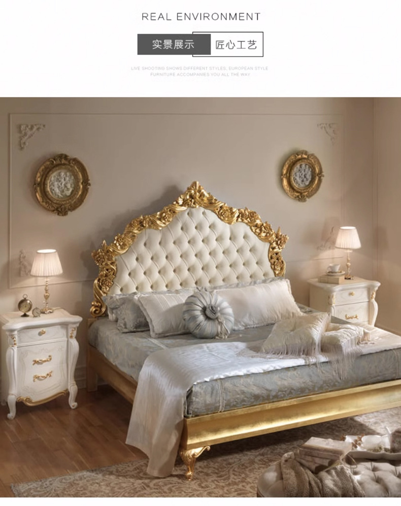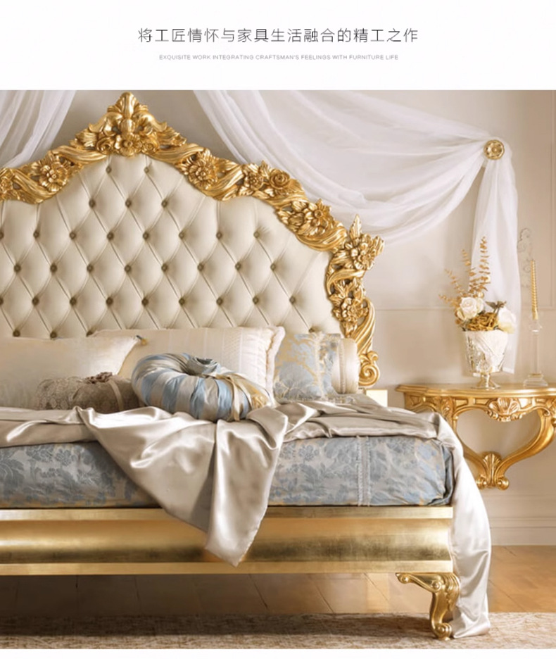 마스터 침실 더블 침대 유럽식 솔리드 우드 프린세스 침대 인터넷-유명한 프레임 조각 가죽 침대 프랑스 스타일 골드 호일 웨딩 침대 침실 큰 침대스토어 가기
