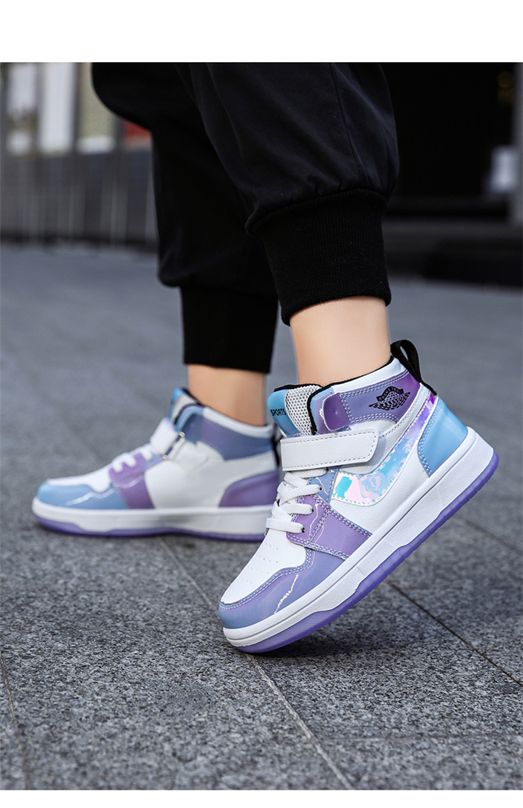 PLUS 어린이 운동화 가을 새로운 방수 가죽 남성 신발 올매치 하이 탑 여자 러닝 슈즈스토어 가기