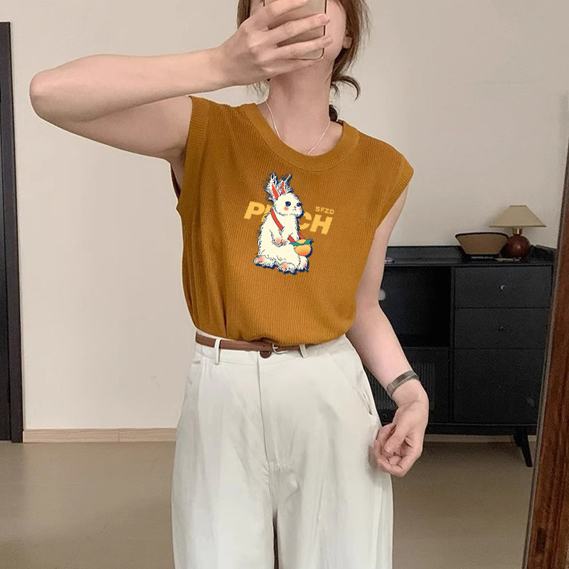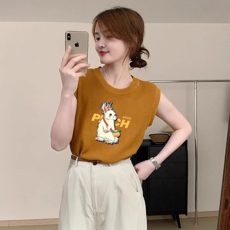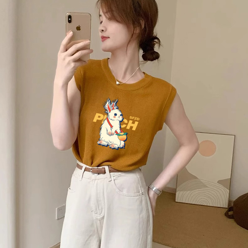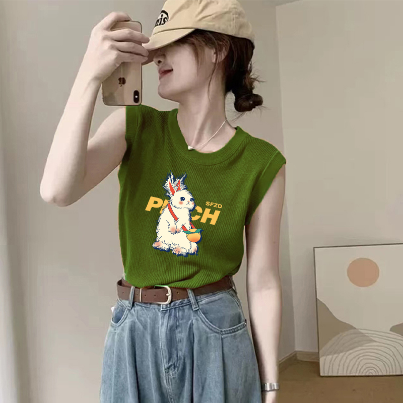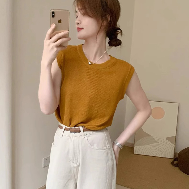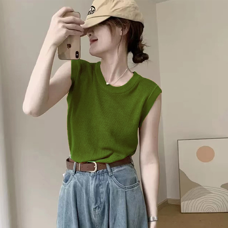 작은 녹색 아이스 실크 조끼 여성의 여름 외부 착용 니트 스웨터 디자인 틈새 소매 톱 2025 새로운 스타일스토어 가기