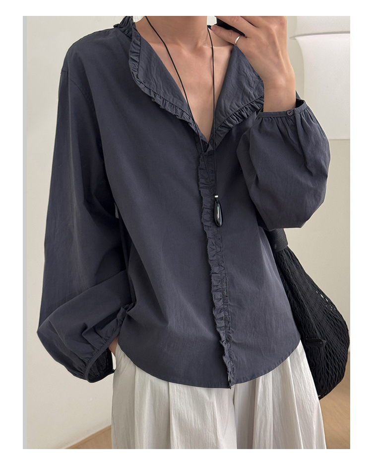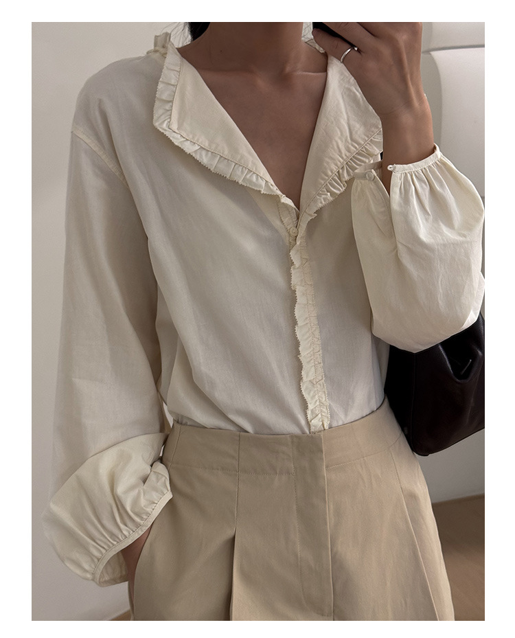 CLEAN SPACE 나무 귀 가장자리 디자인 긴 소매 셔츠 여성의 2025 13 라인 새로운 스타일 우아한 셔츠 55032