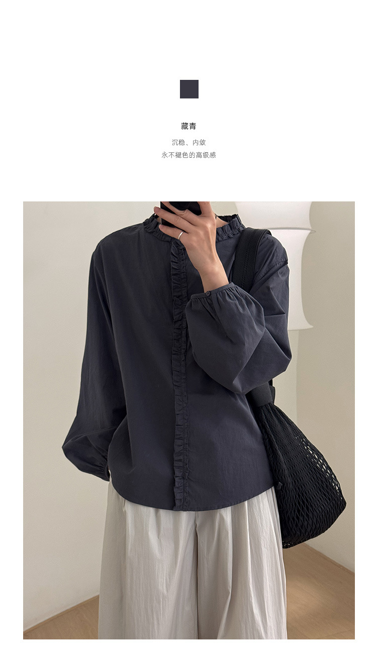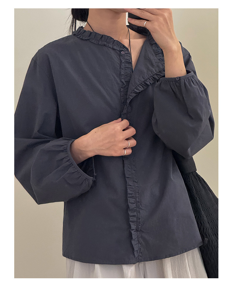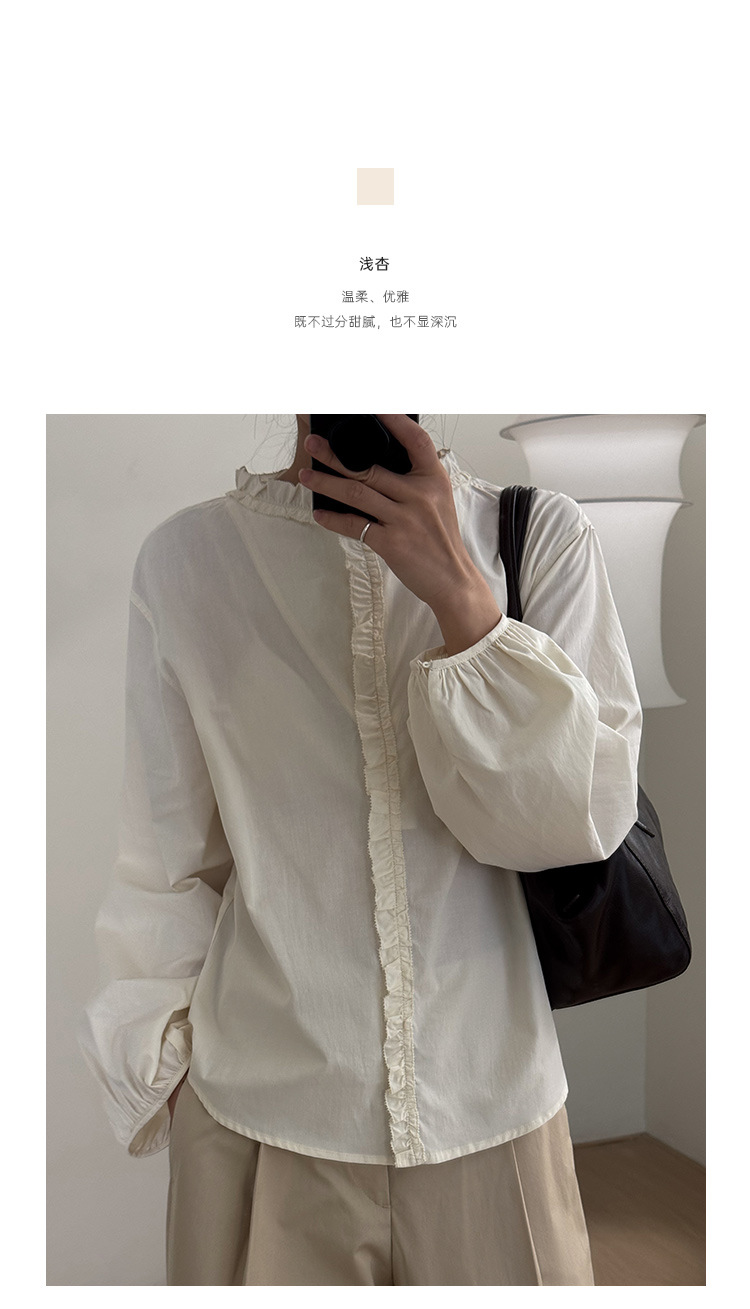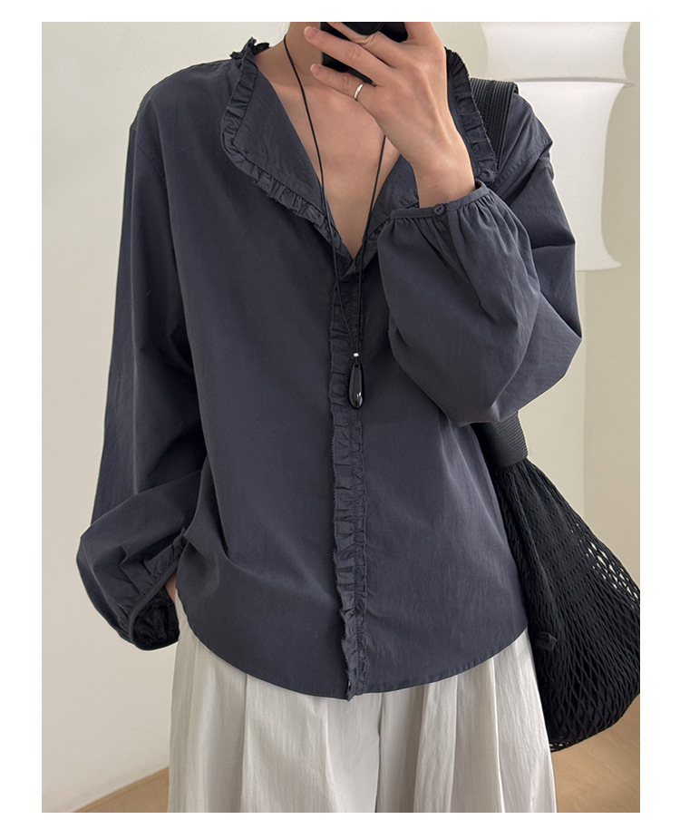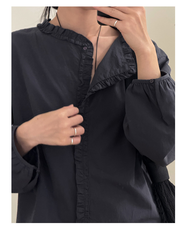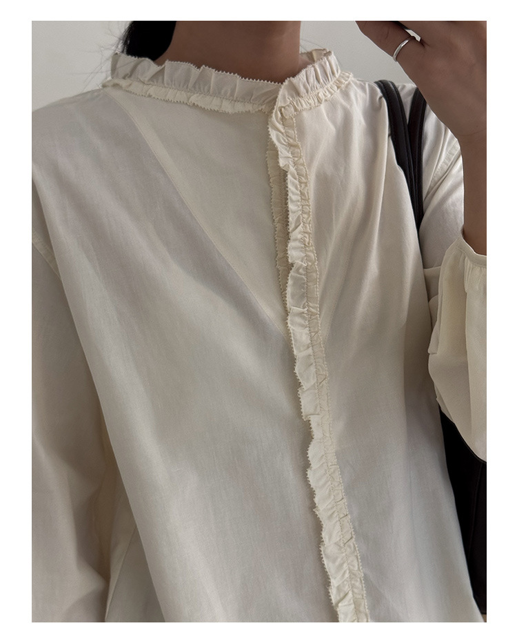 CLEAN SPACE 나무 귀 가장자리 디자인 긴 소매 셔츠 여성의 2025 13 라인 새로운 스타일 우아한 셔츠 55032스토어 가기