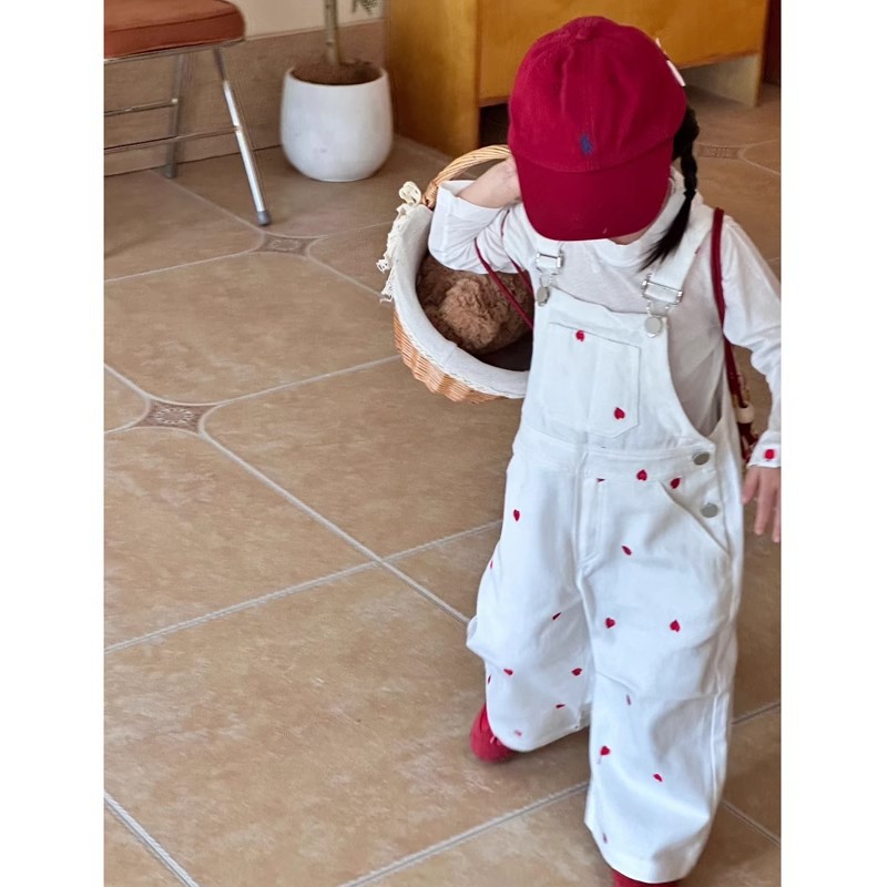 소녀의 붉은 사랑 자수 한 조각 바지 2025 새로운 봄과 여름 아이들의 느슨한 데님 아동복스토어 가기