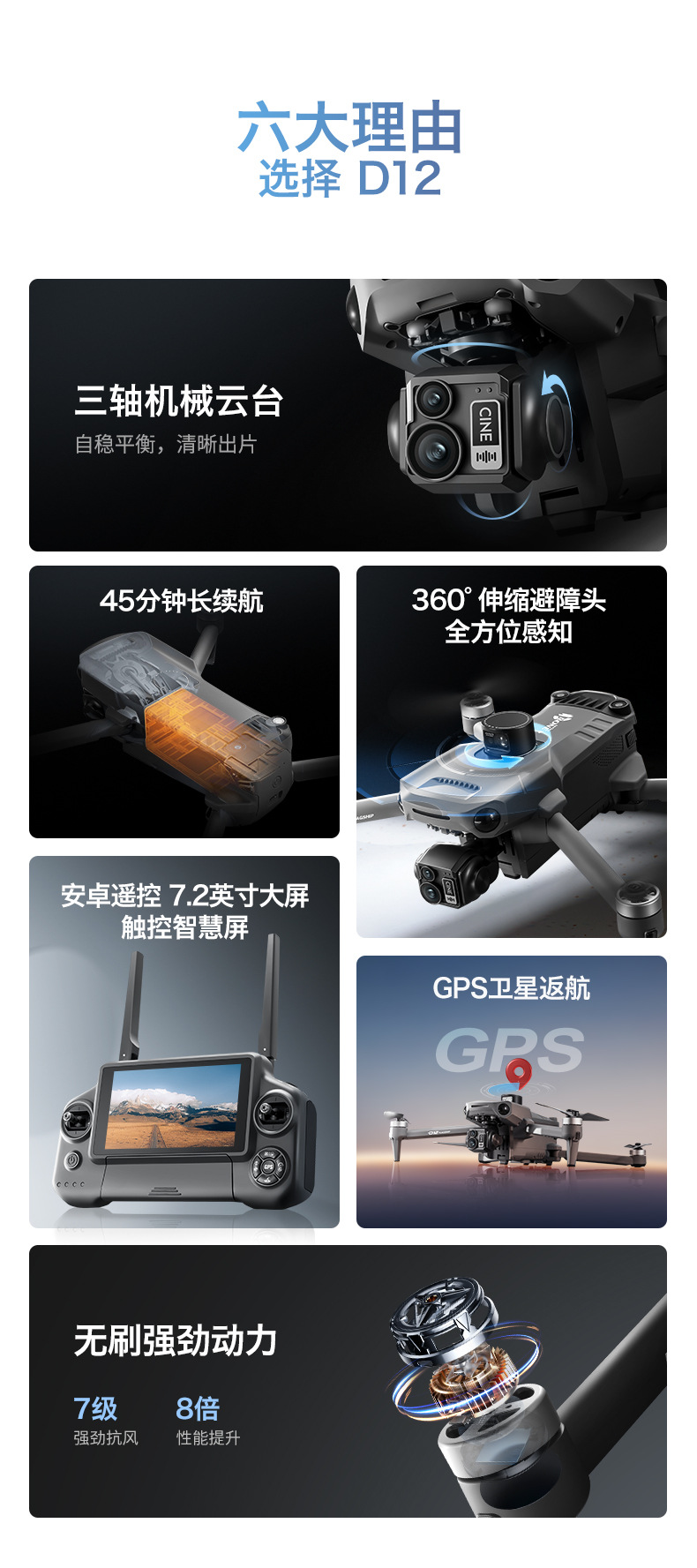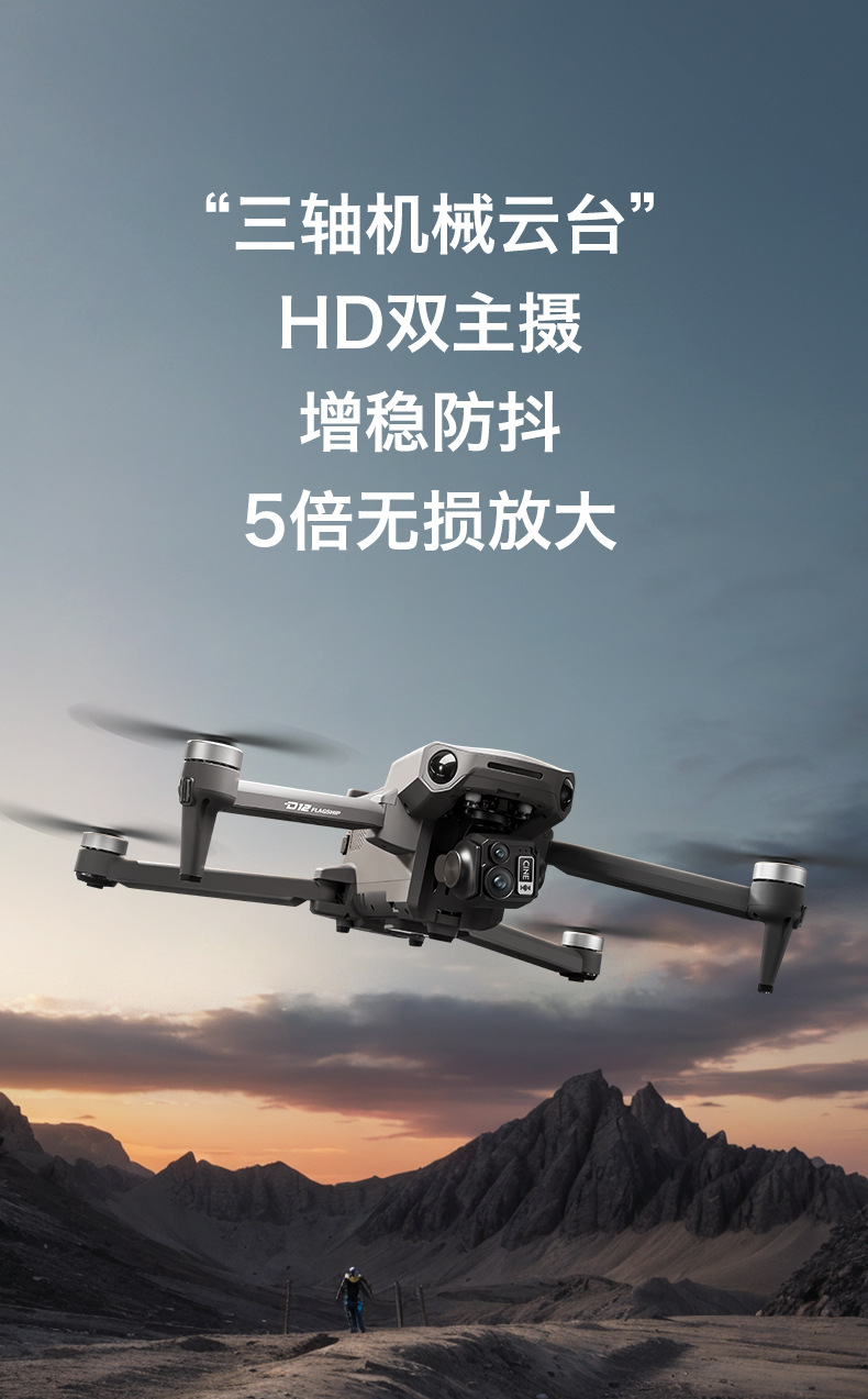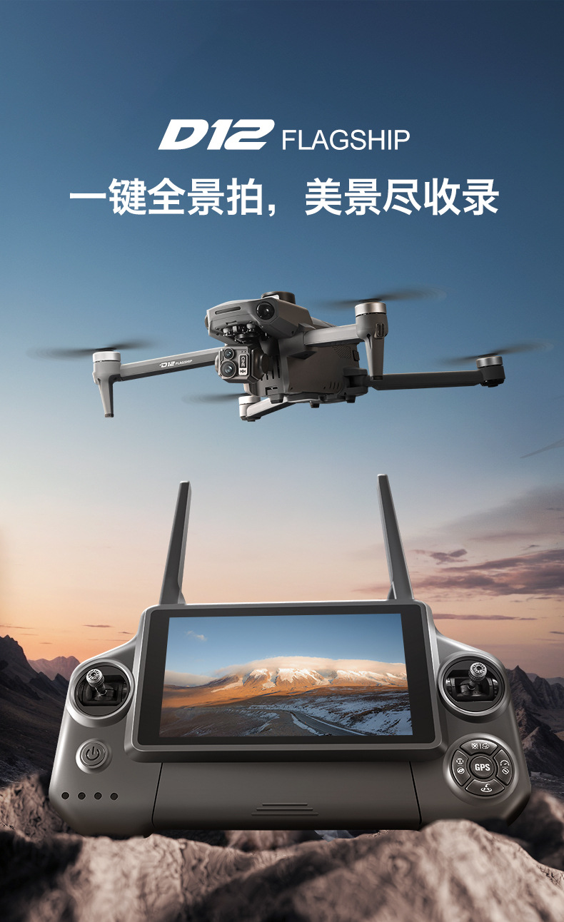 D12 국경 간 3축 짐벌 드론 브러시리스 릴레이 항공 사진 항공기 화면 제어 GPS 리프팅 및 장애물 회피 드론
