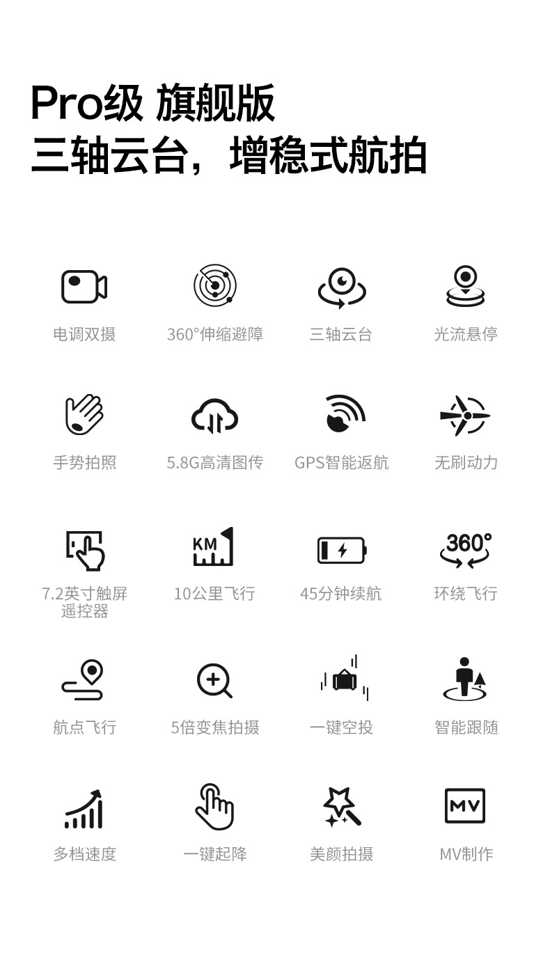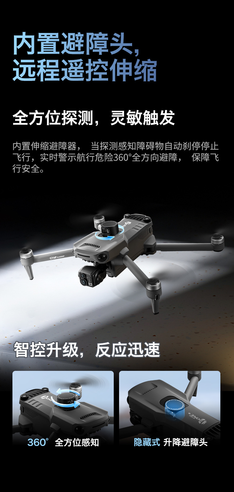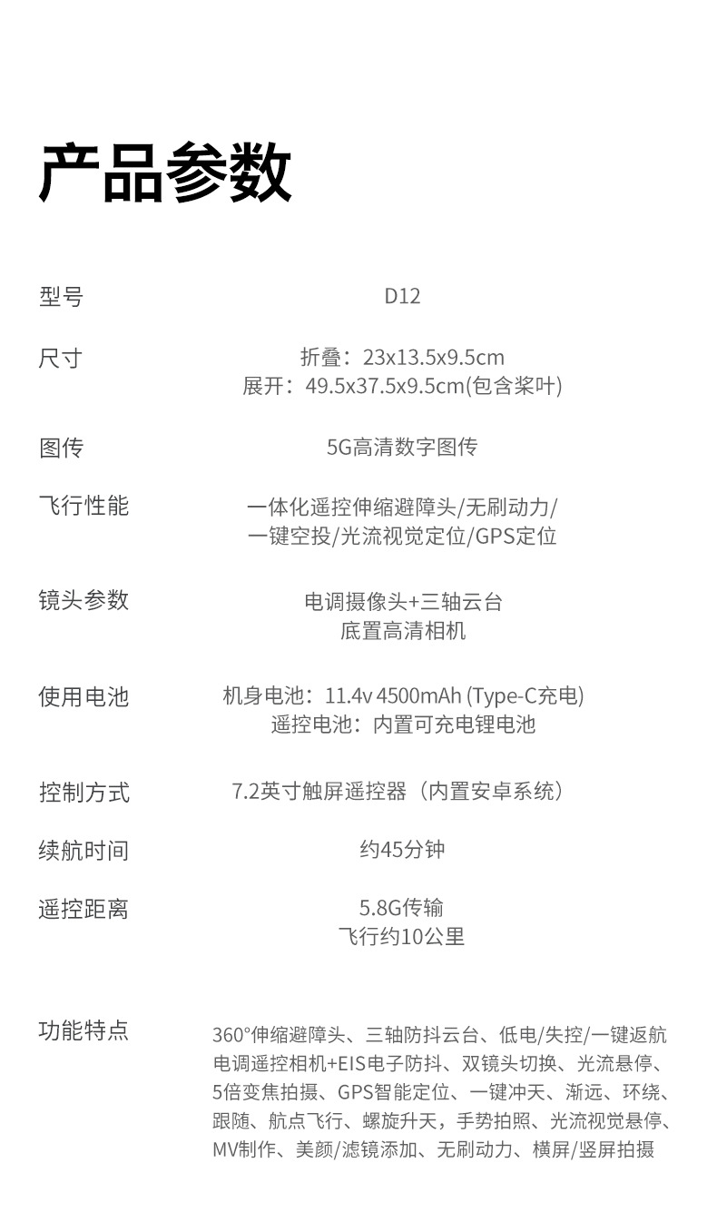 D12 국경 간 3축 짐벌 드론 브러시리스 릴레이 항공 사진 항공기 화면 제어 GPS 리프팅 및 장애물 회피 드론