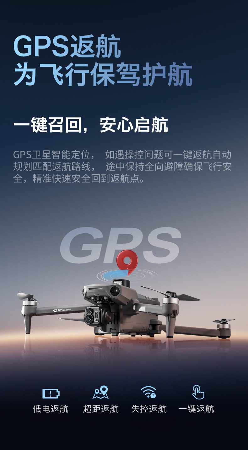 D12 국경 간 3축 짐벌 드론 브러시리스 릴레이 항공 사진 항공기 화면 제어 GPS 리프팅 및 장애물 회피 드론스토어 가기