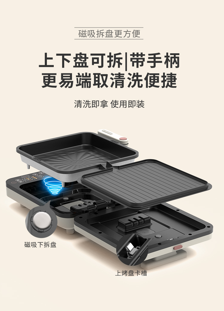 • [새 모델] 30mm 깊은 접시 + 탈부착 및 세척 가능한 하단 플레이트 + 스마트 버전 + 3단 화재