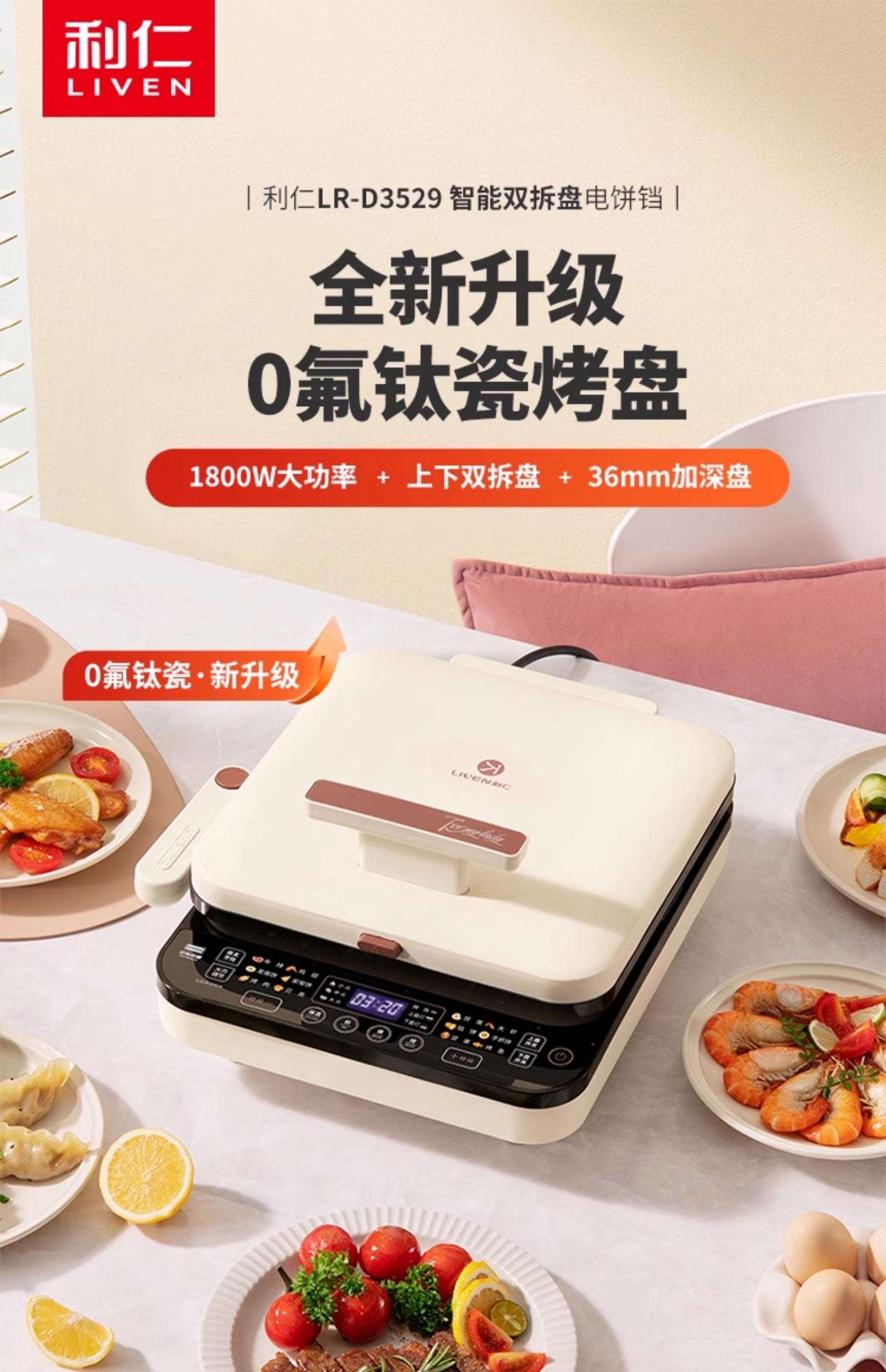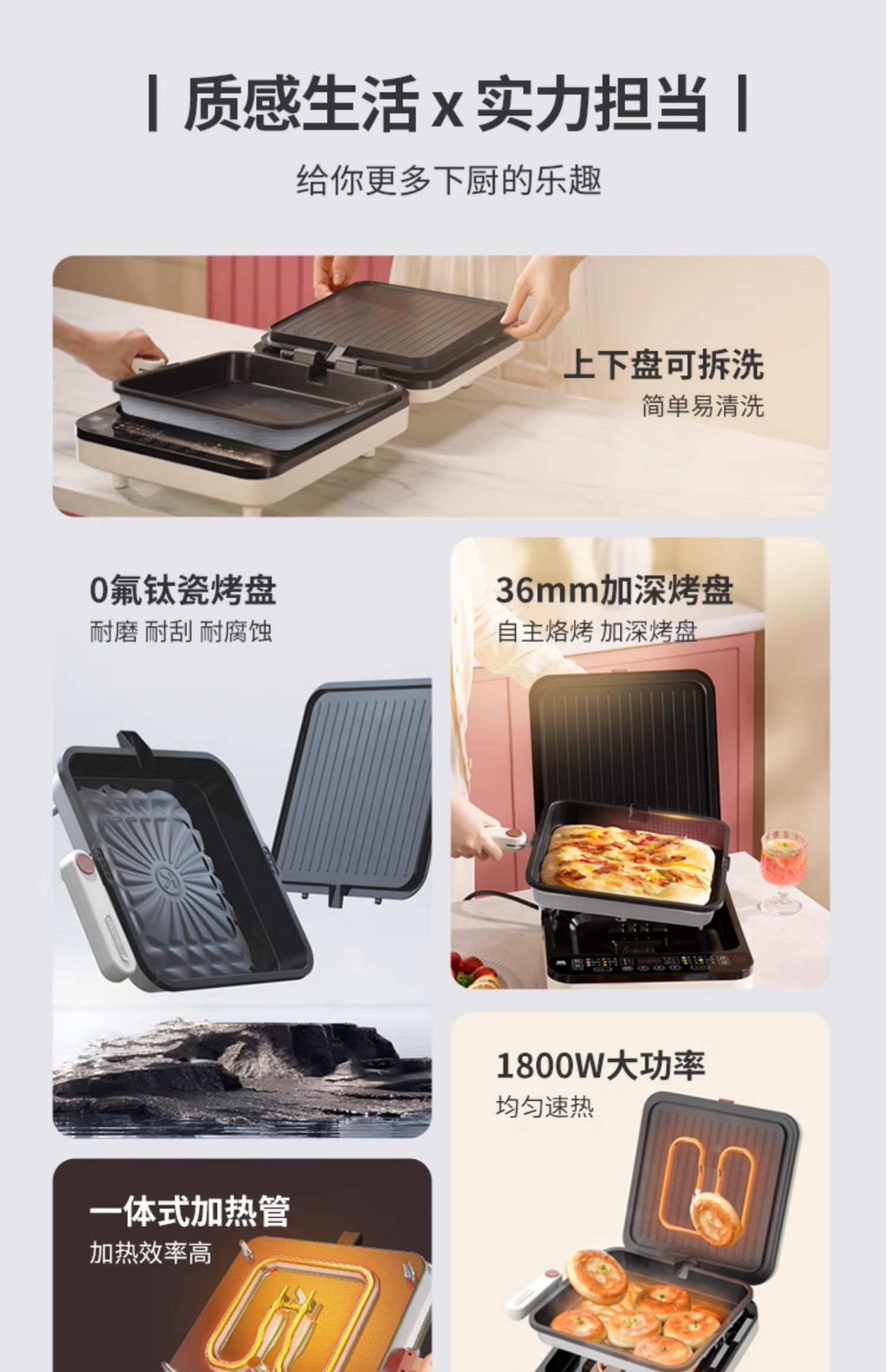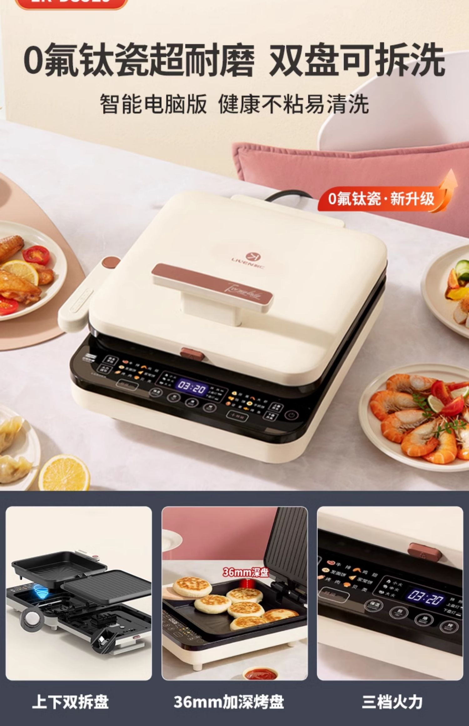 • [업그레이드] 0불소 티타늄 도자기 베이킹팬 + 상하 이중탈착판 + 36mm 초심판 + 스마트 메뉴