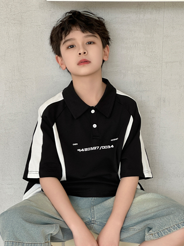 소년 반팔 2025 여름 새로운 한국 스타일 아동 의류 대비 색상 접합 얇은 옷깃 폴로 셔츠 반팔 탑스토어 가기