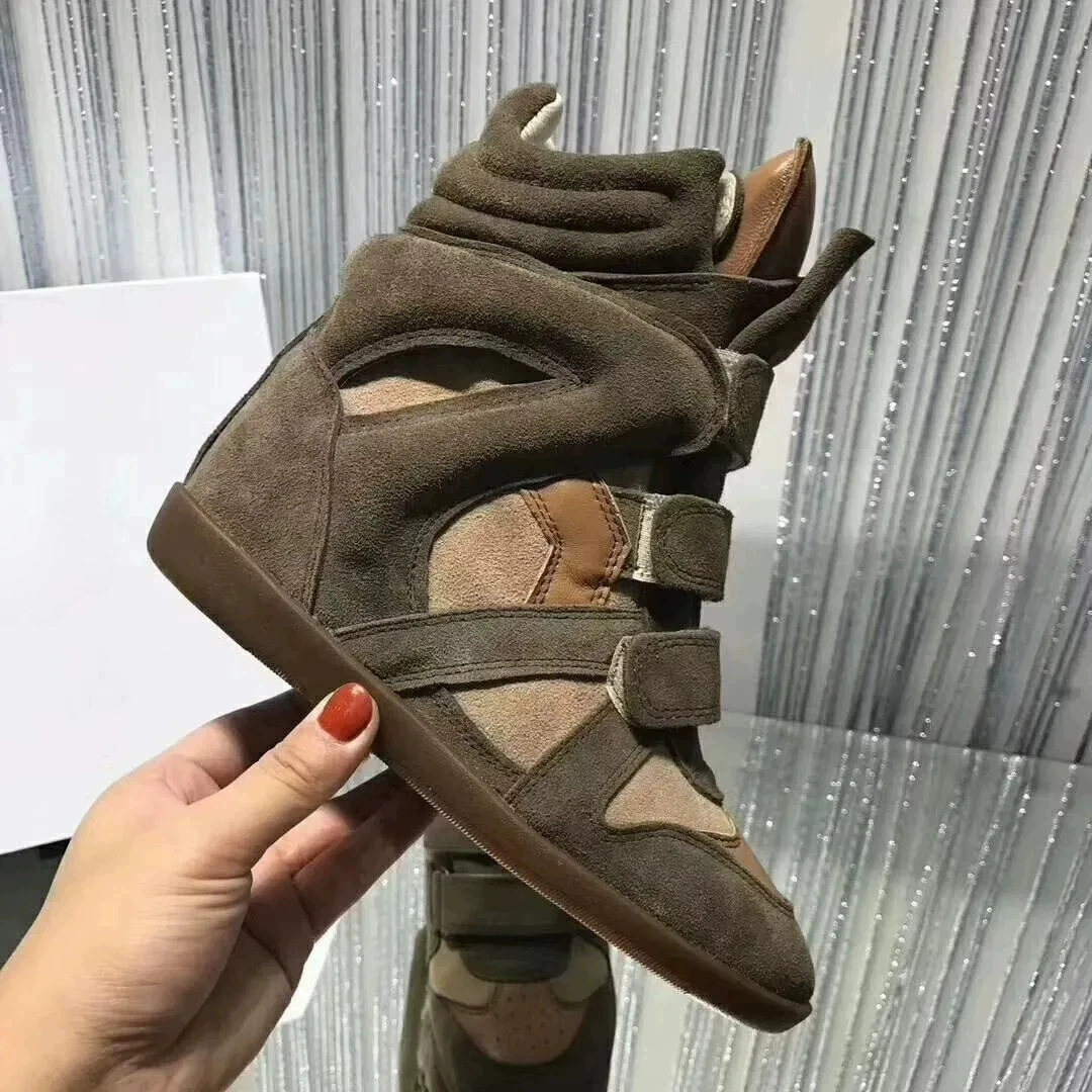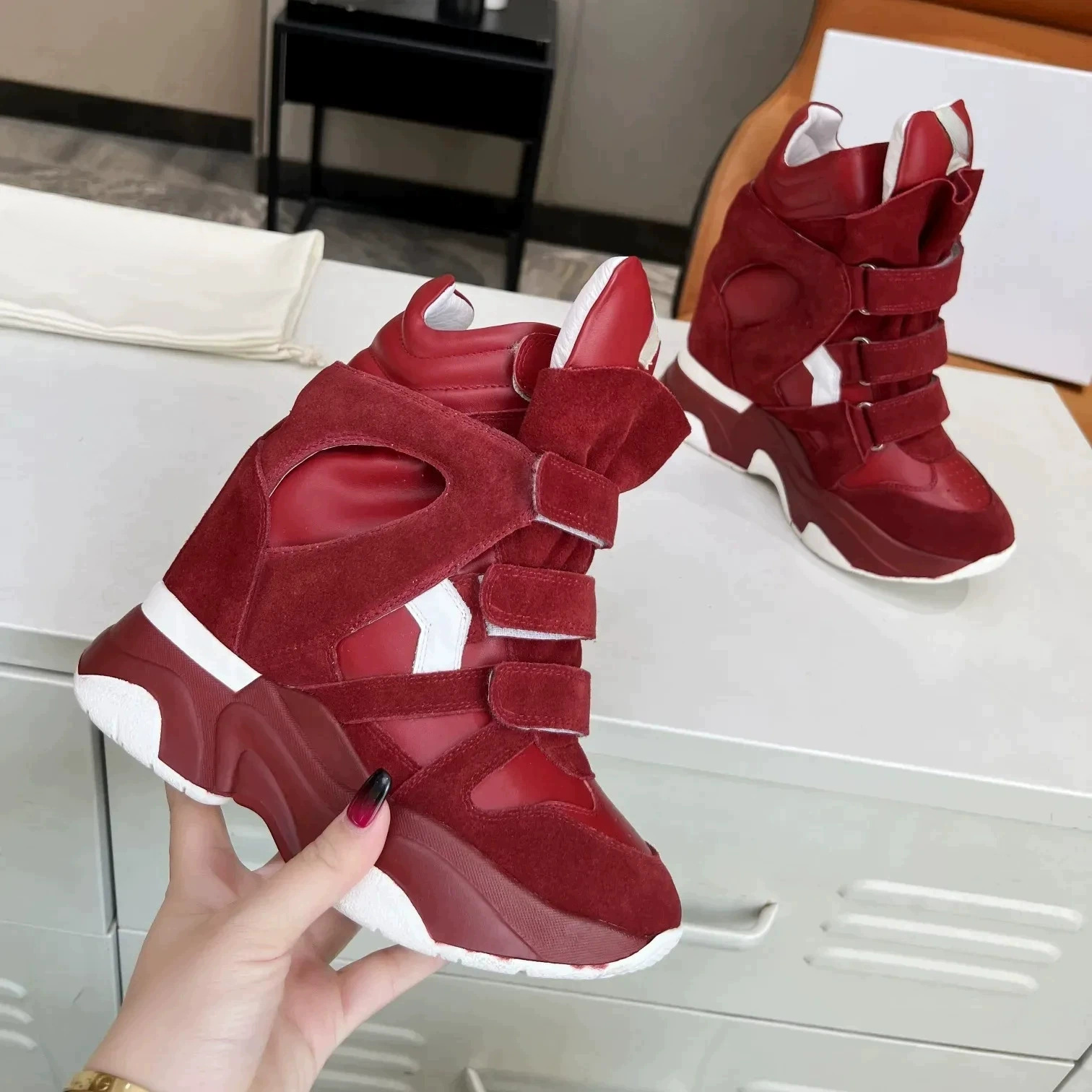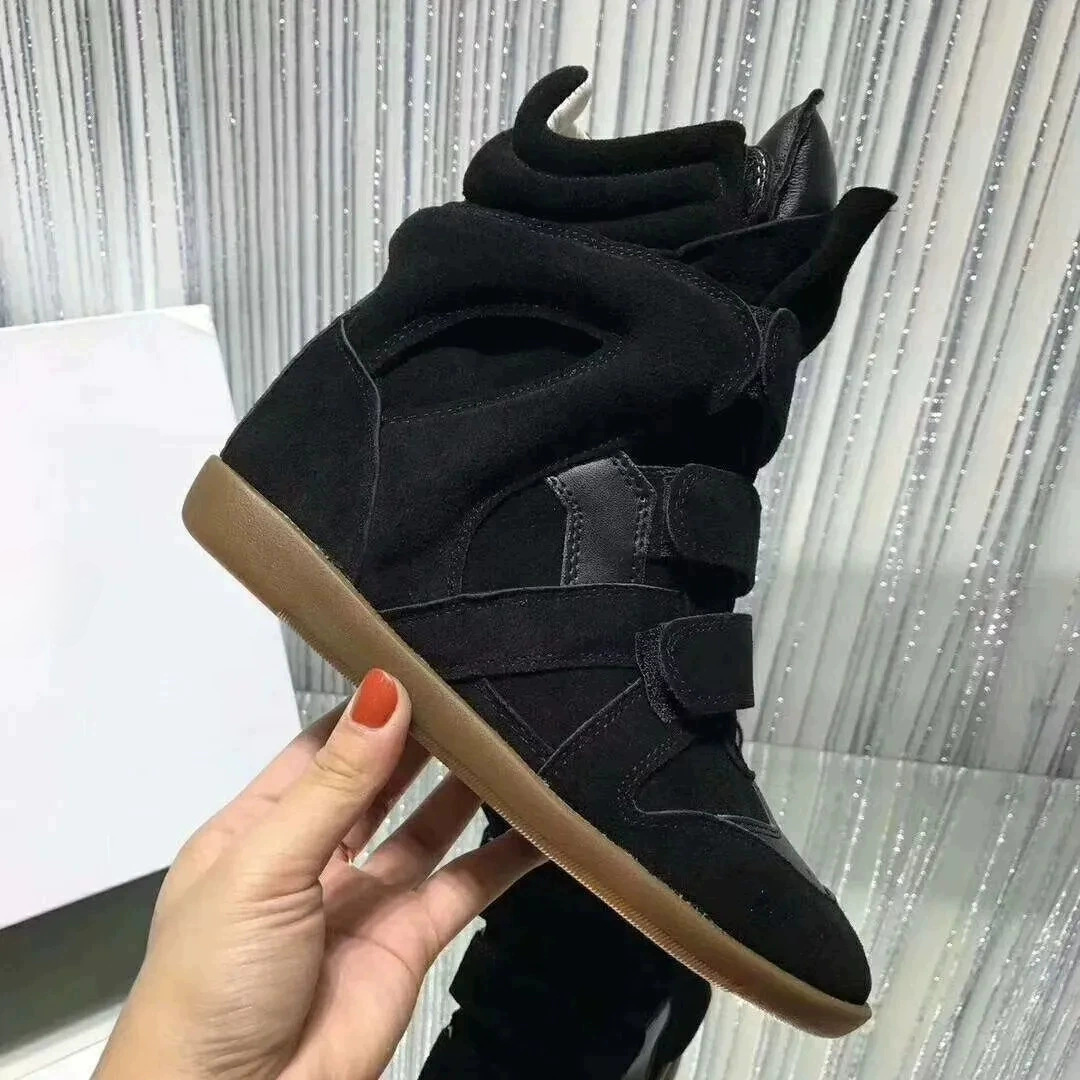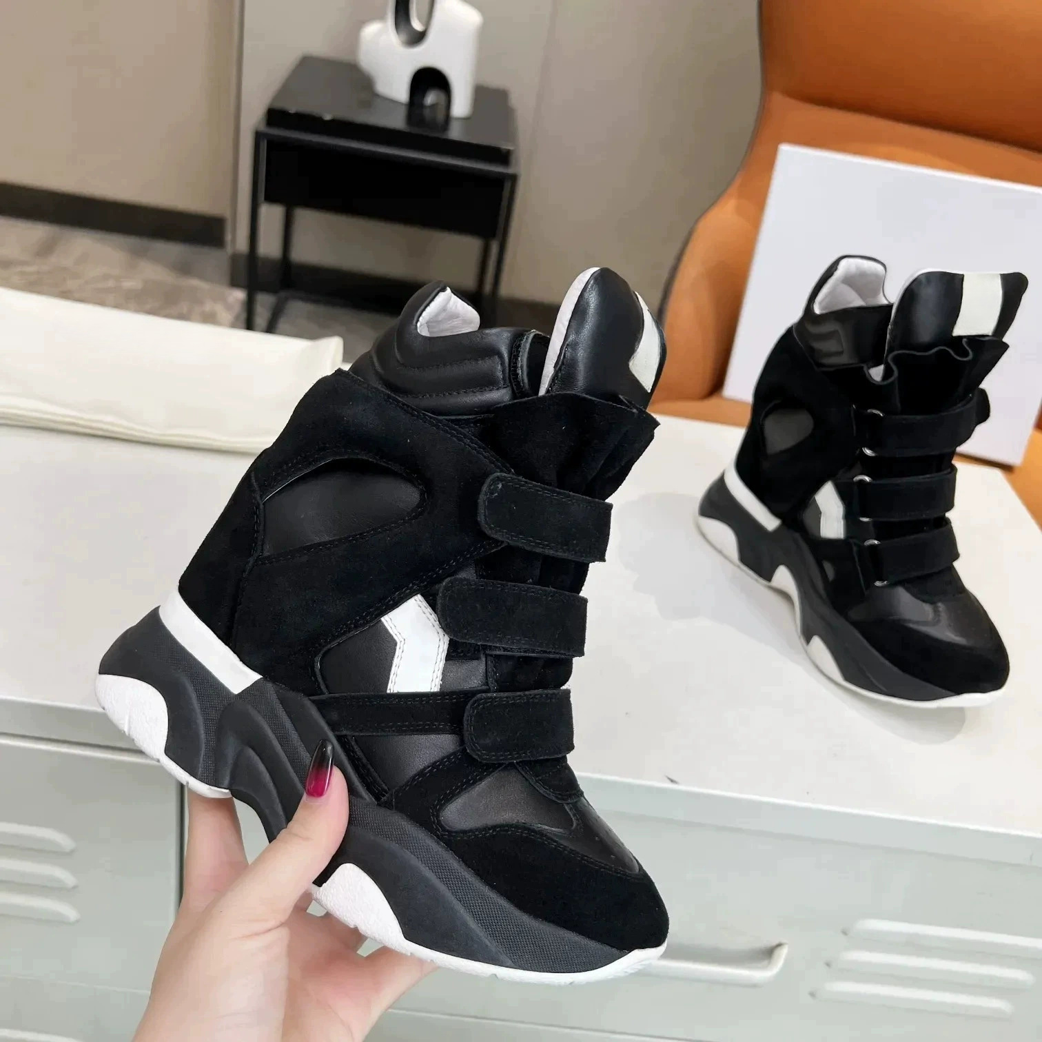 유럽과 미국의 거리 폭발 남녀 동일 스타일 증가 8cm 라운드 발가락 플랫 부츠 캐주얼 신발 벨크로 등산 신발