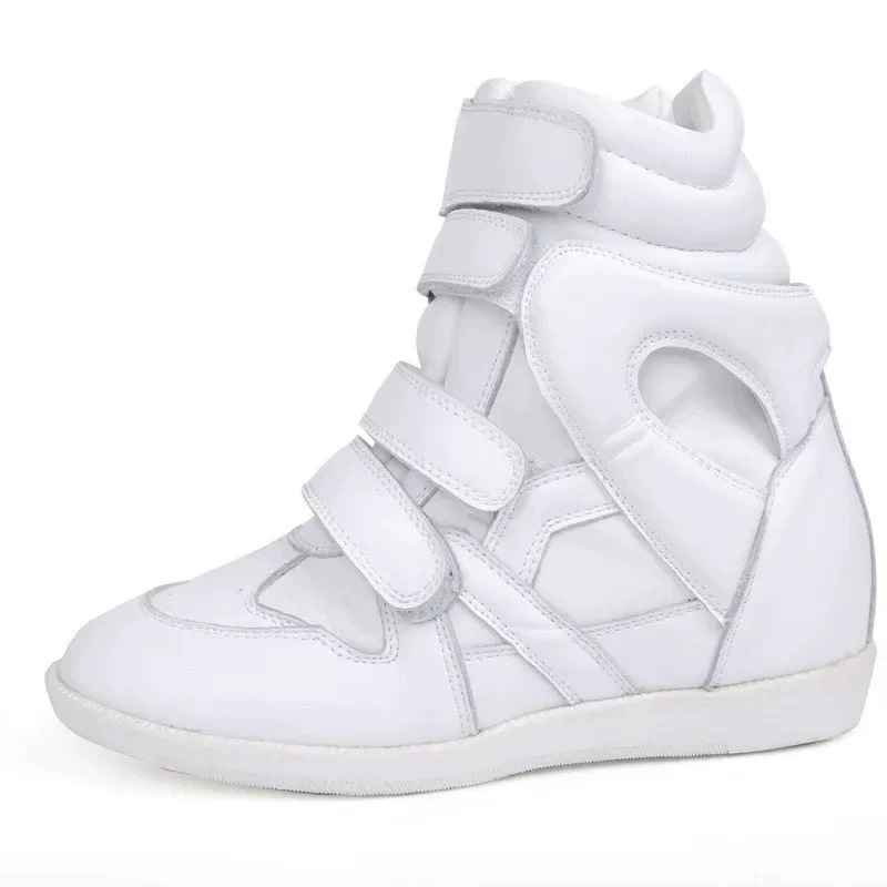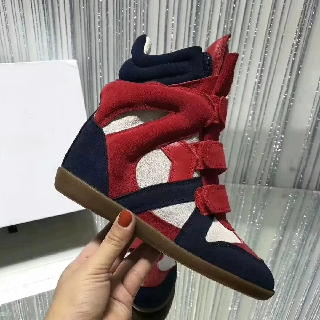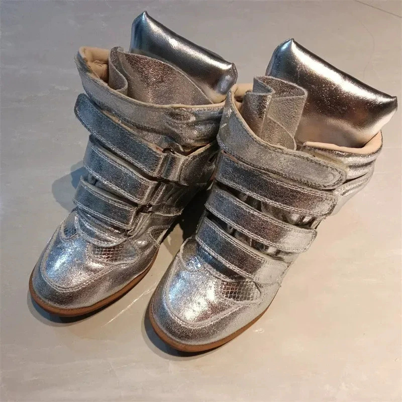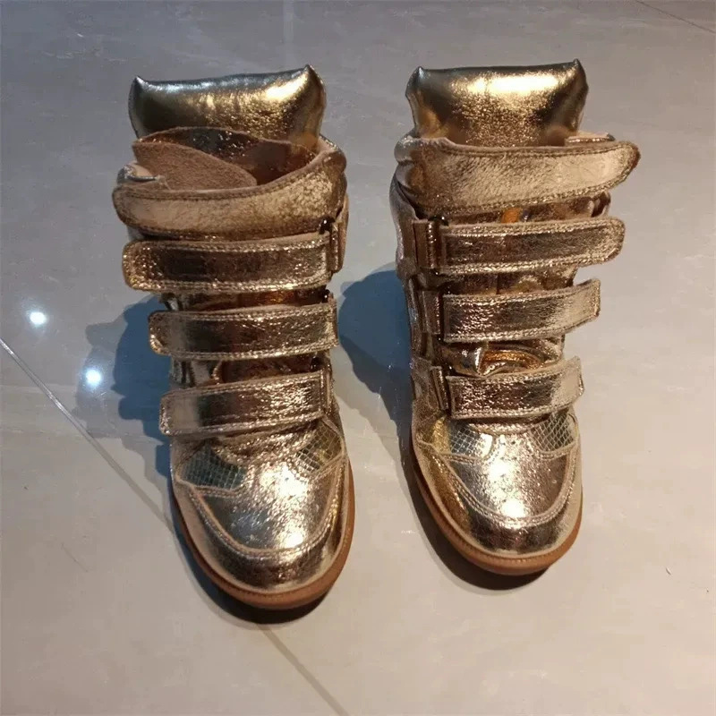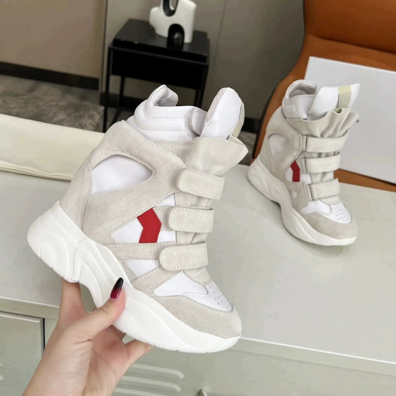 유럽과 미국의 거리 폭발 남녀 동일 스타일 증가 8cm 라운드 발가락 플랫 부츠 캐주얼 신발 벨크로 등산 신발