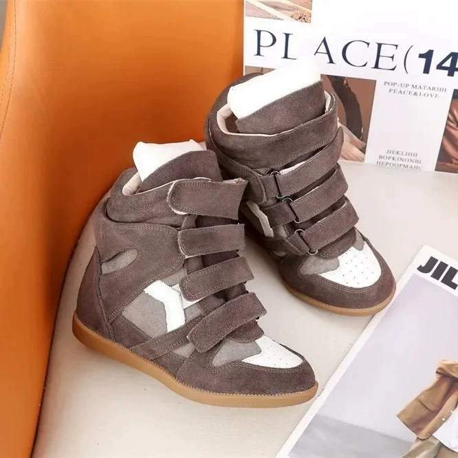 유럽과 미국의 거리 폭발 남녀 동일 스타일 증가 8cm 라운드 발가락 플랫 부츠 캐주얼 신발 벨크로 등산 신발스토어 가기