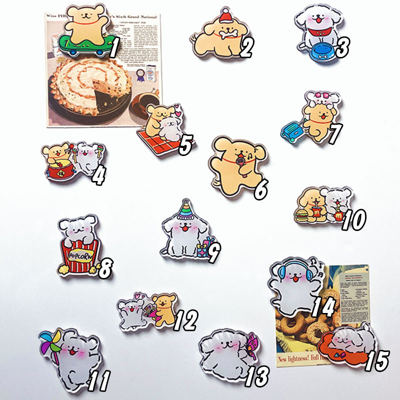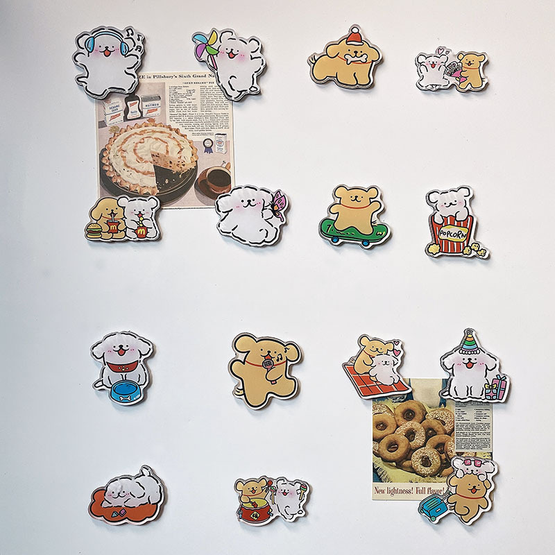 한국 라인 강아지 귀여운 만화 개 냉장고 그물 빨간 폭발 도매 아크릴 마그네틱 스티커 지도 사용자 정의스토어 가기