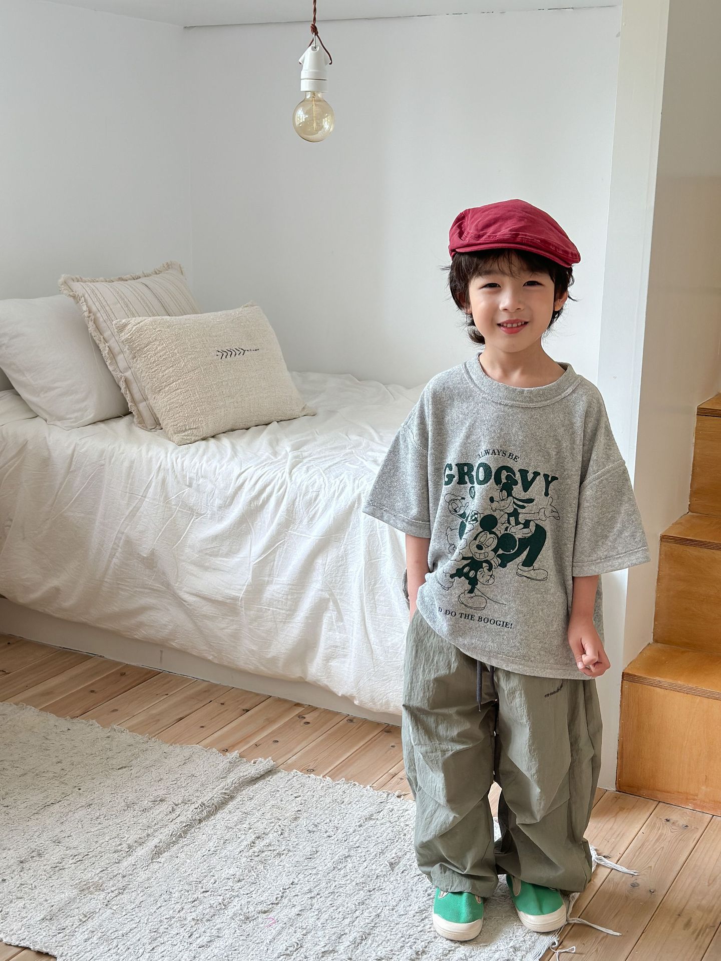 어린이 한국식 여름 캐주얼 느슨한 만화 인쇄 반팔 티셔츠 남녀 어린이 수건 자수 올매치 탑스토어 가기