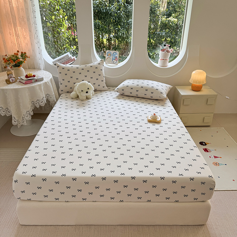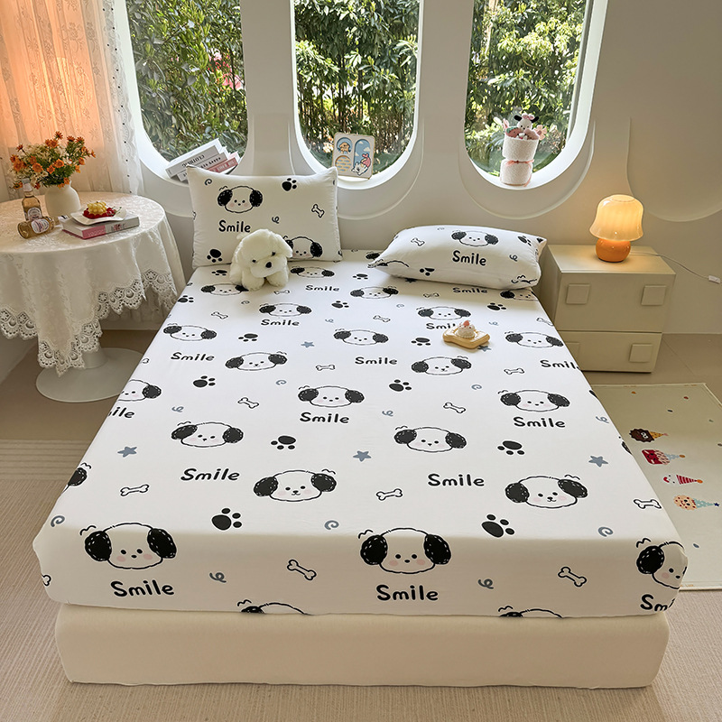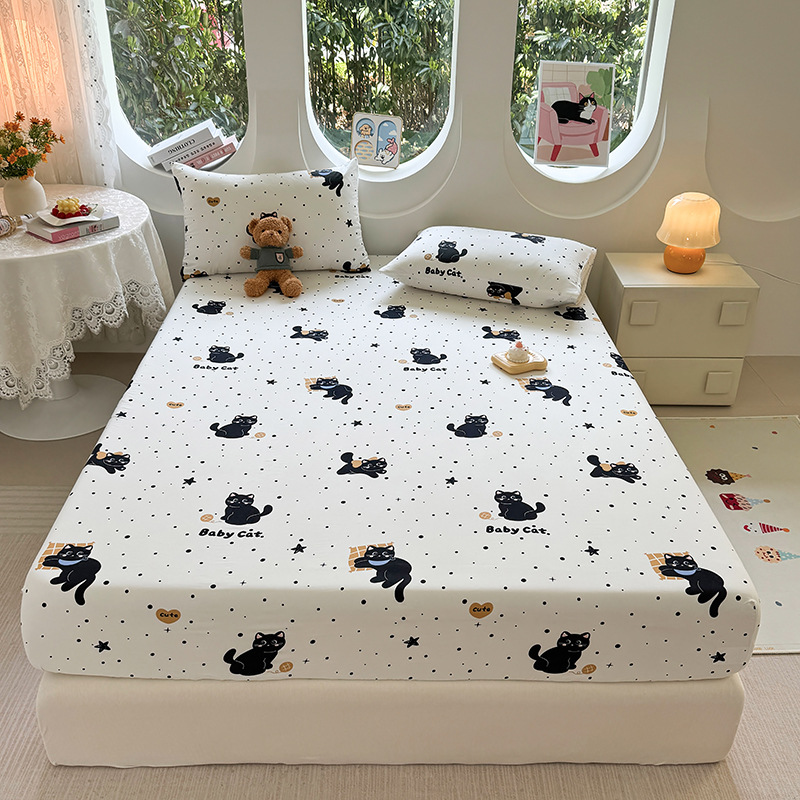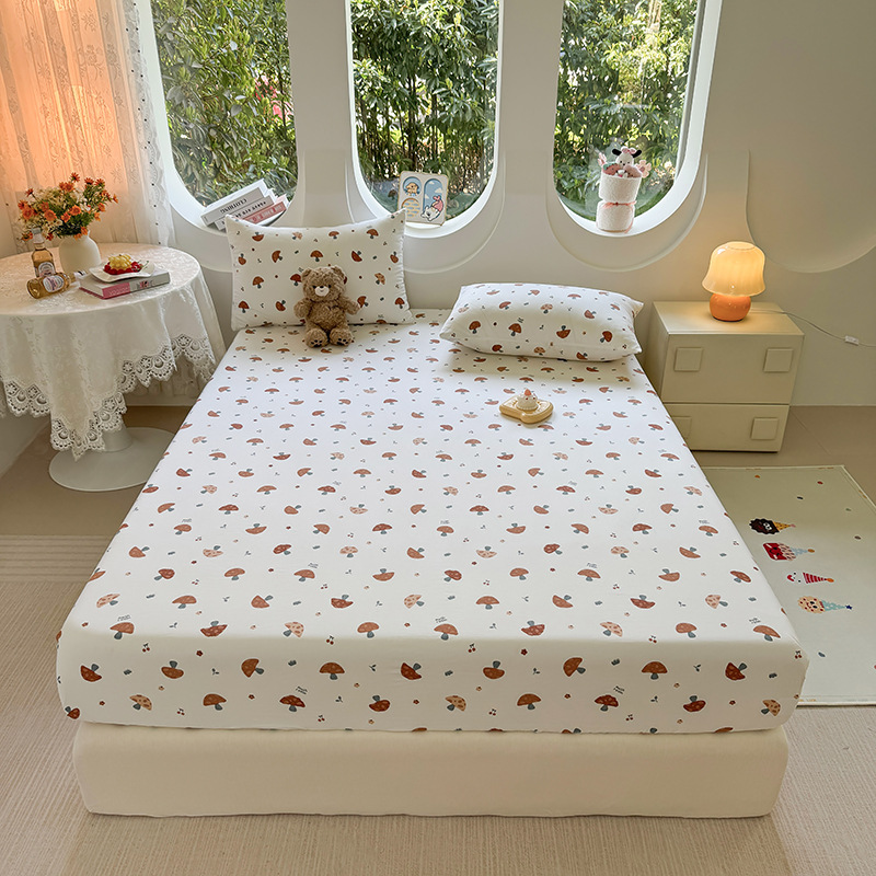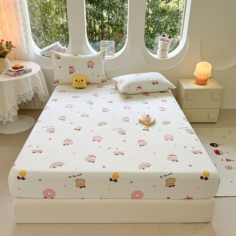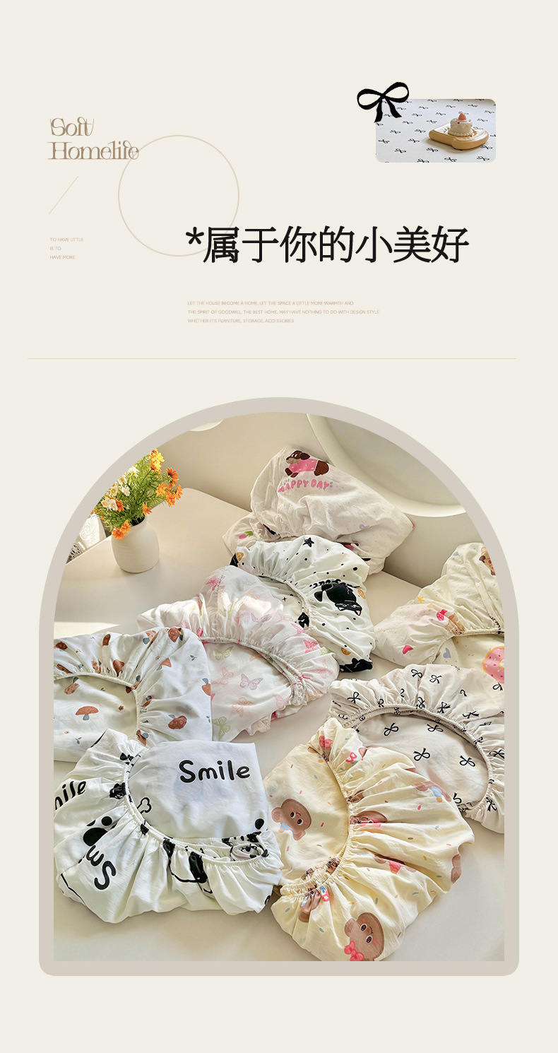 한국 스타일 만화 인쇄 된 세척 된 면화 싱글 침대 모자 피부 친화적 인 통기성 침대 시트 편안한 침구 매트리스 방진 보호 커버스토어 가기