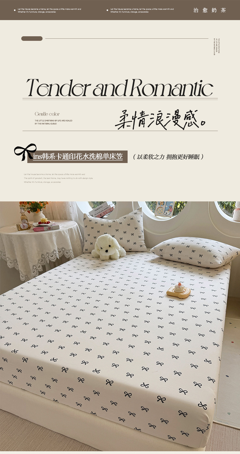 한국 스타일 만화 인쇄 된 세척 된 면화 싱글 침대 모자 피부 친화적 인 통기성 침대 시트 편안한 침구 매트리스 방진 보호 커버