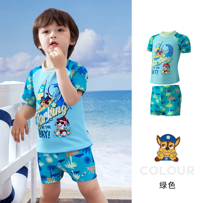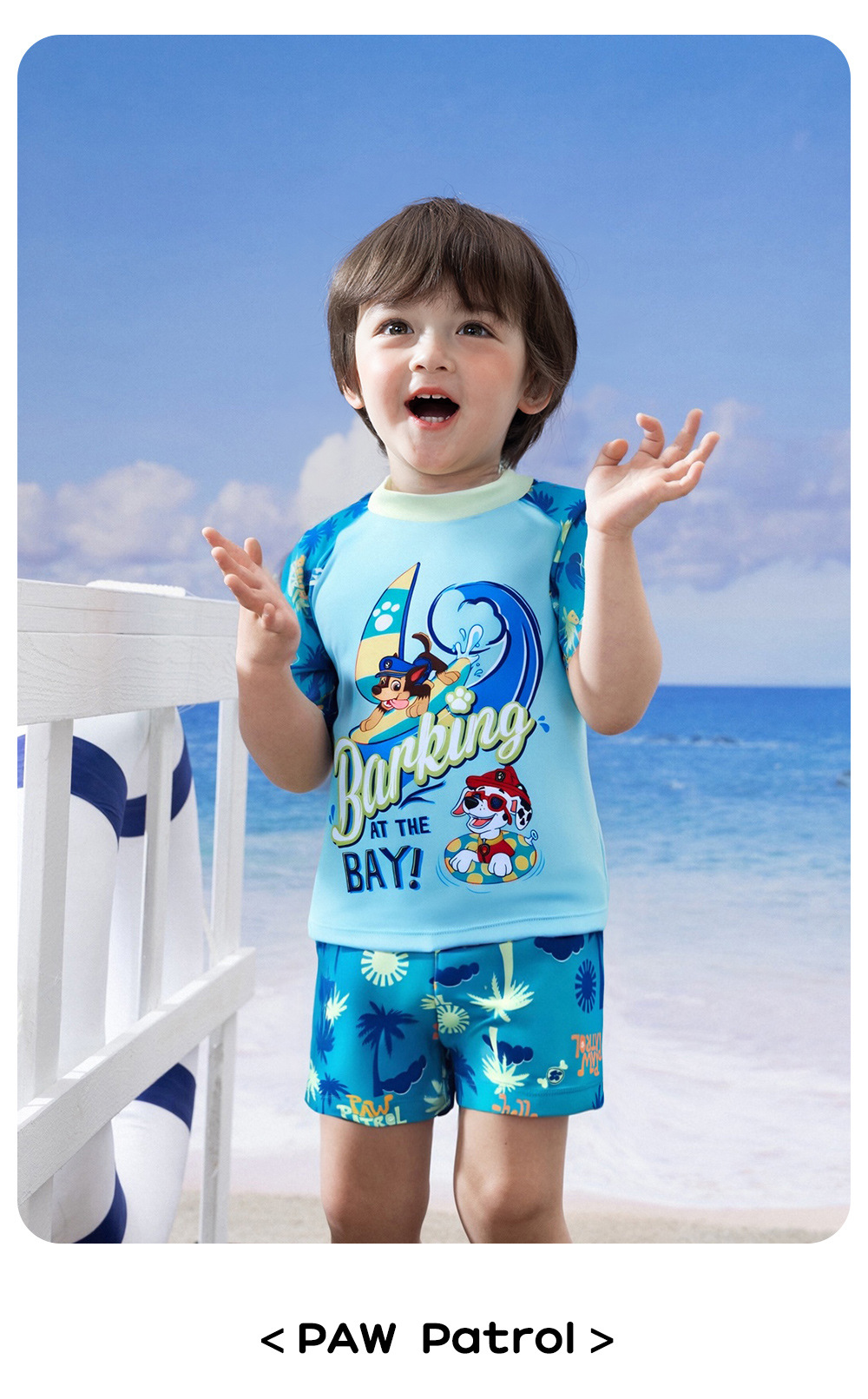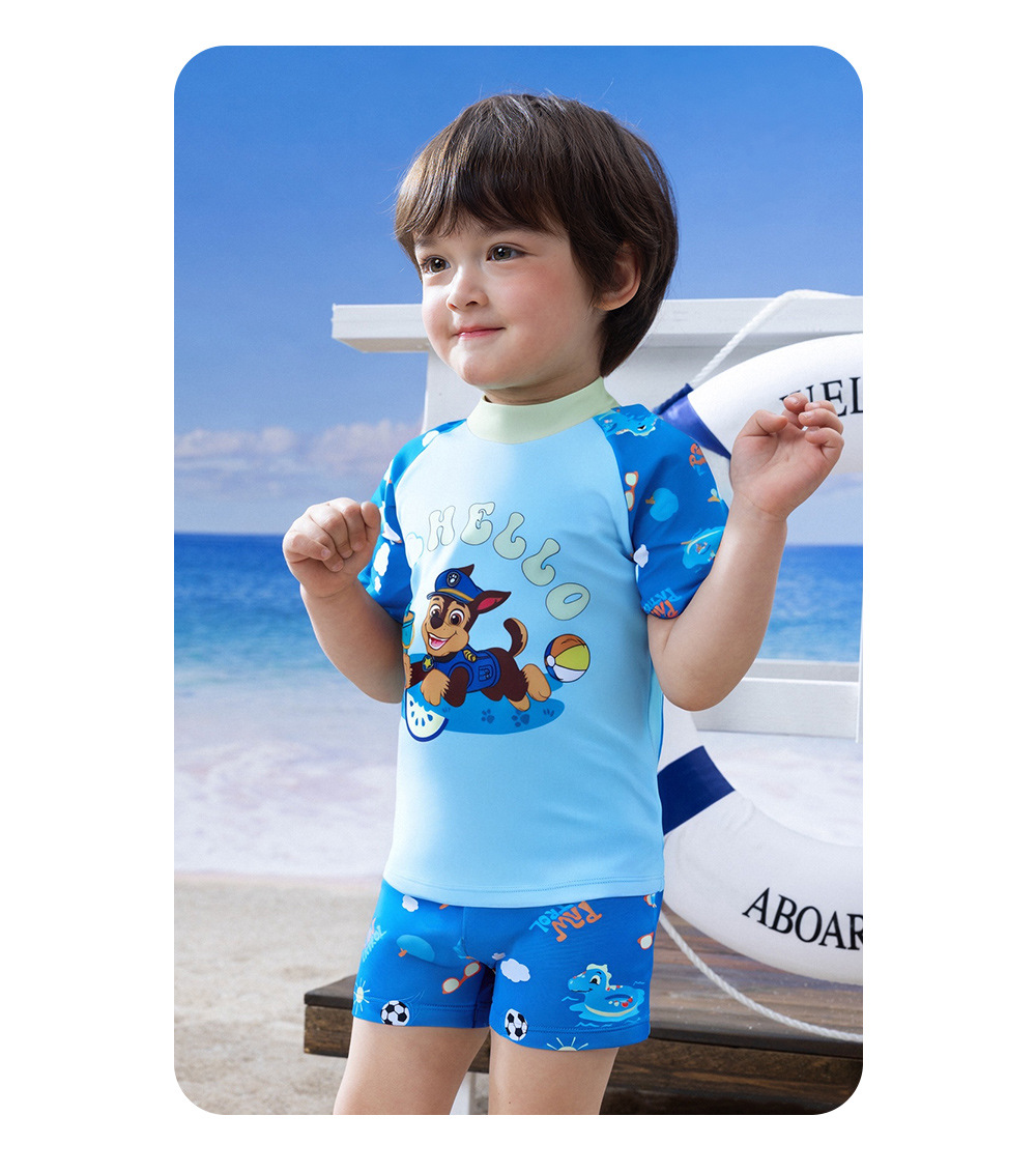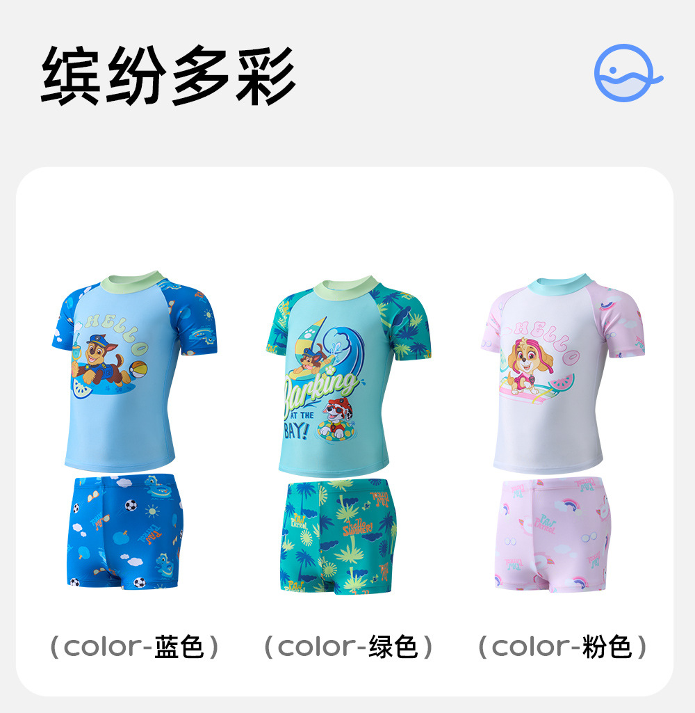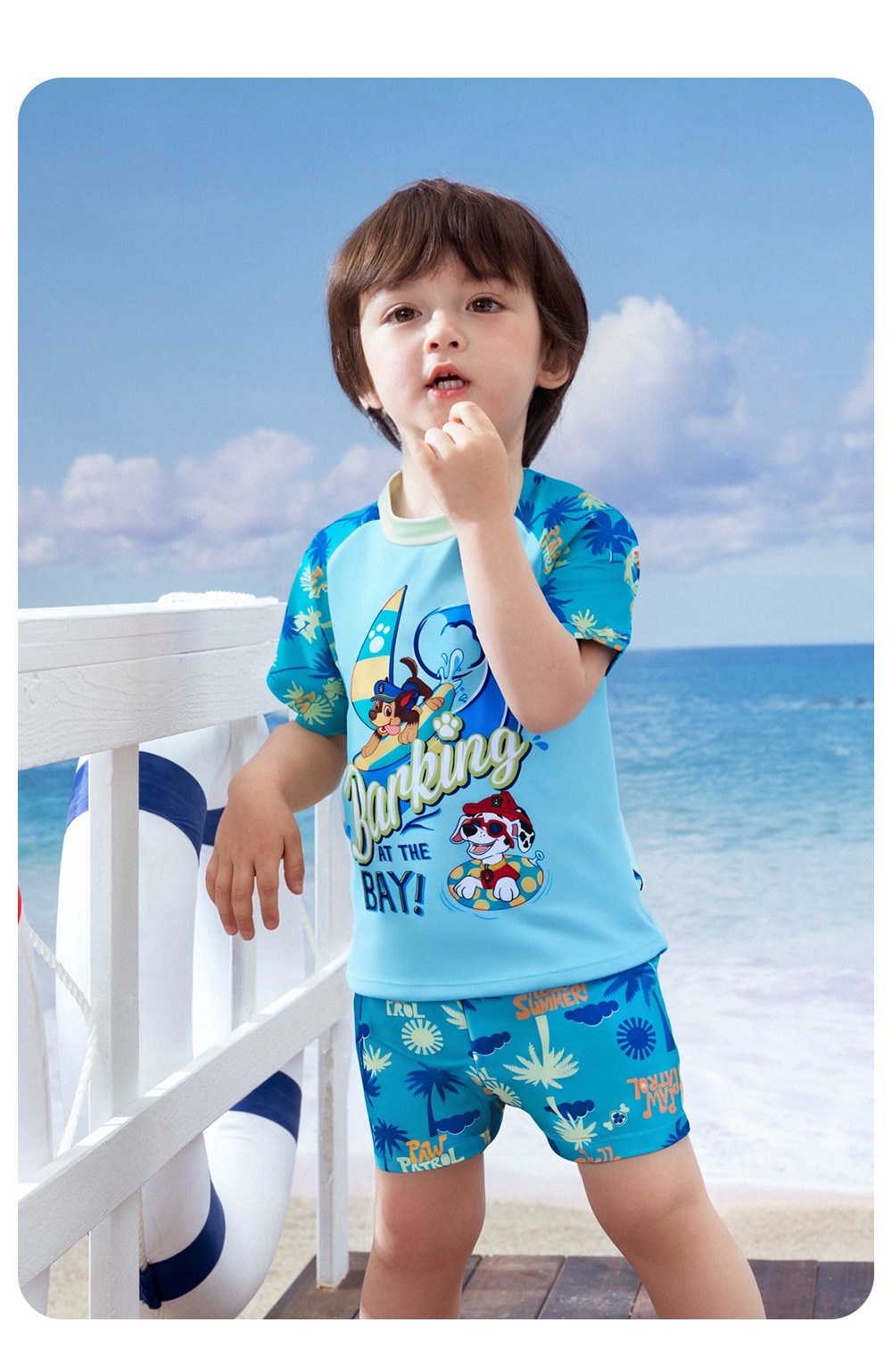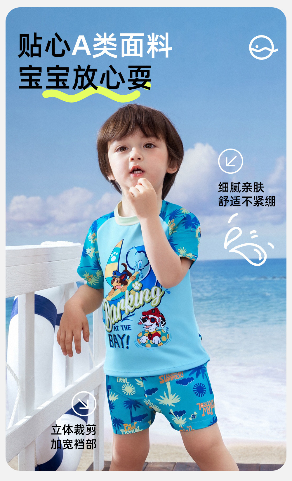 왕왕 팀 아기 수영복 소년 및 소녀 분할 반팔 수영복 베이비 비치 선 스크린 클래스 수영복